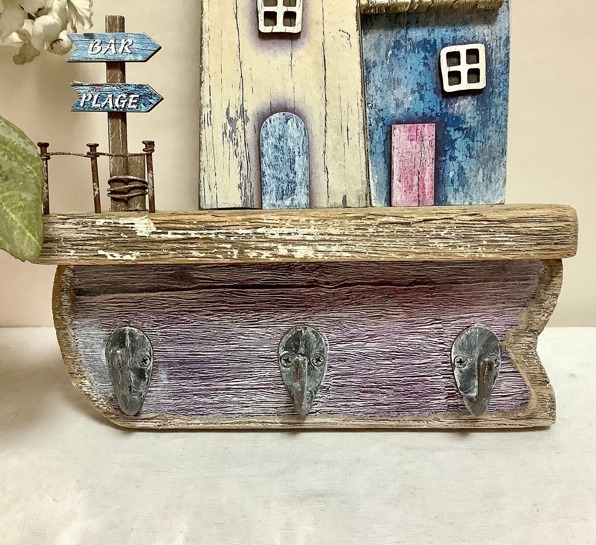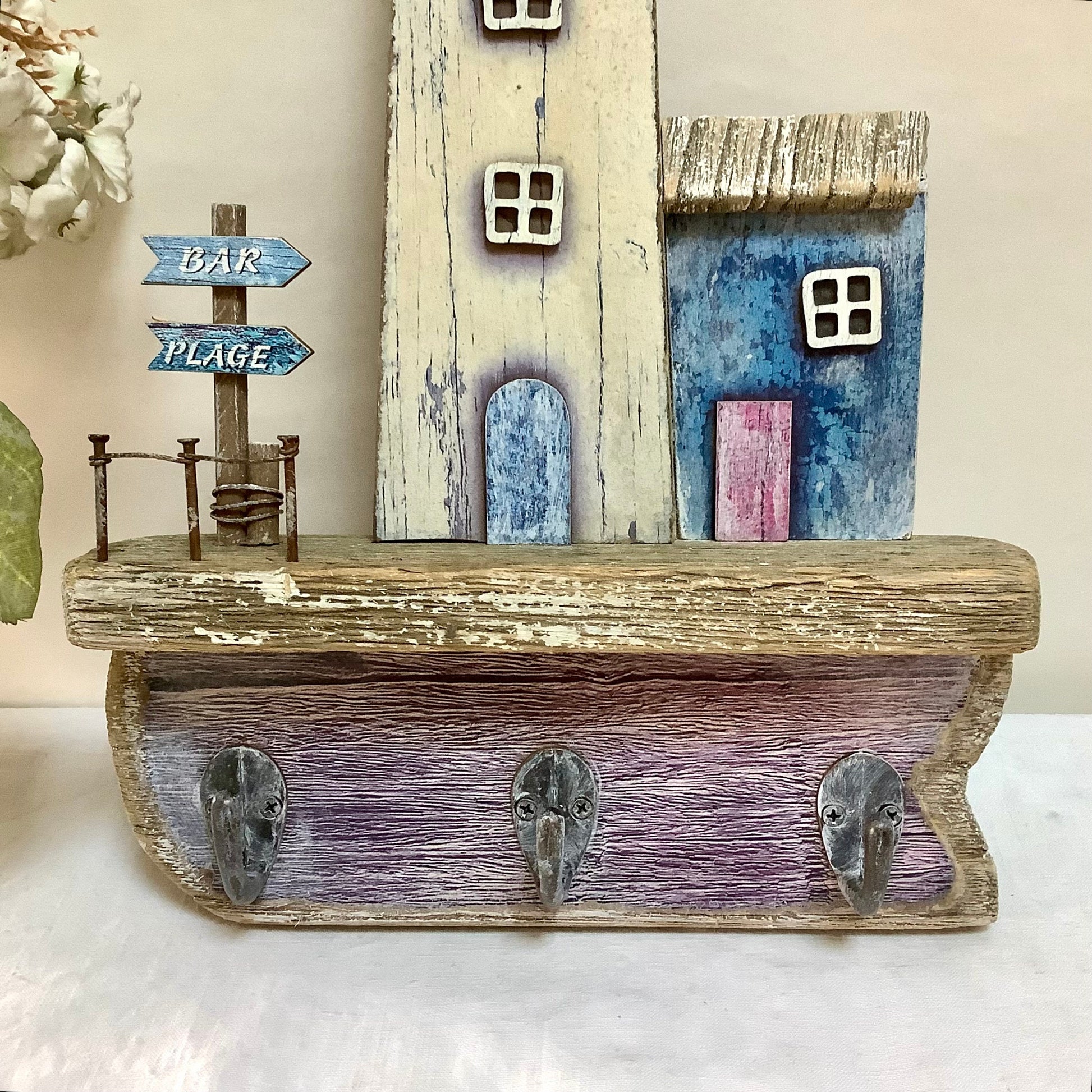 Accroche torchons phare marin en bois flotté finitions artisanales. 3 accroches au dos