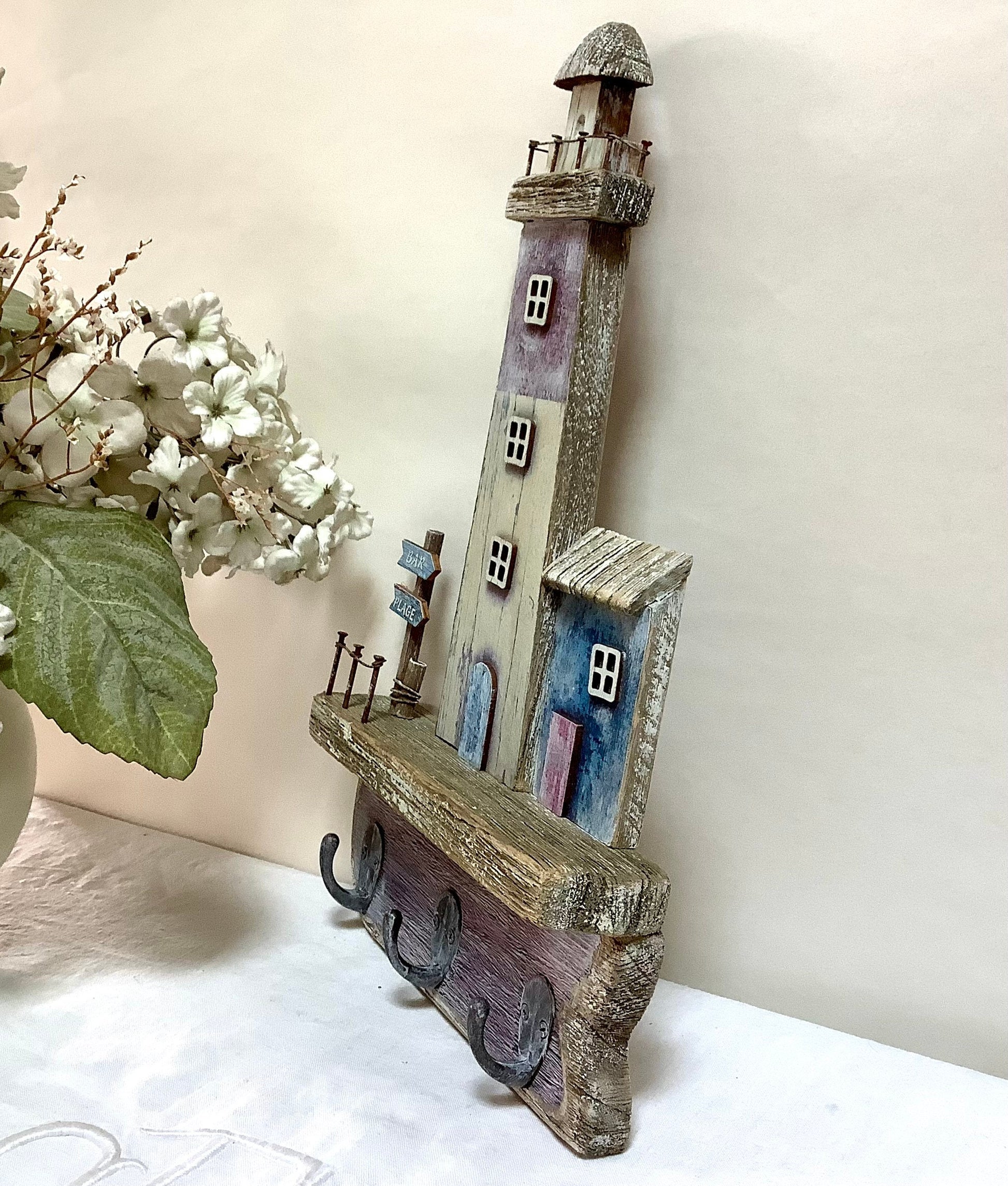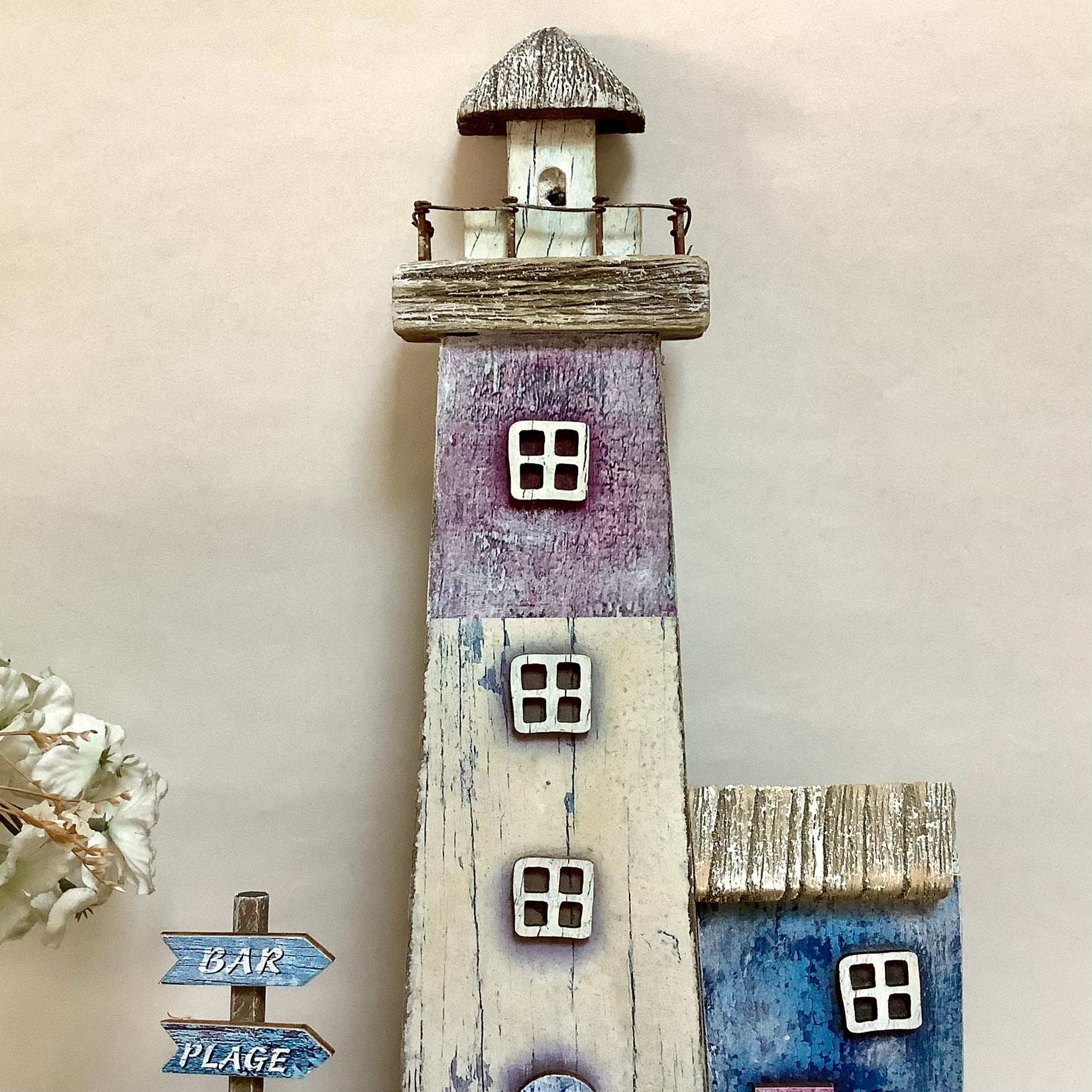 Accroche torchons phare marin bois flotté vintage ht 32.5 cm
