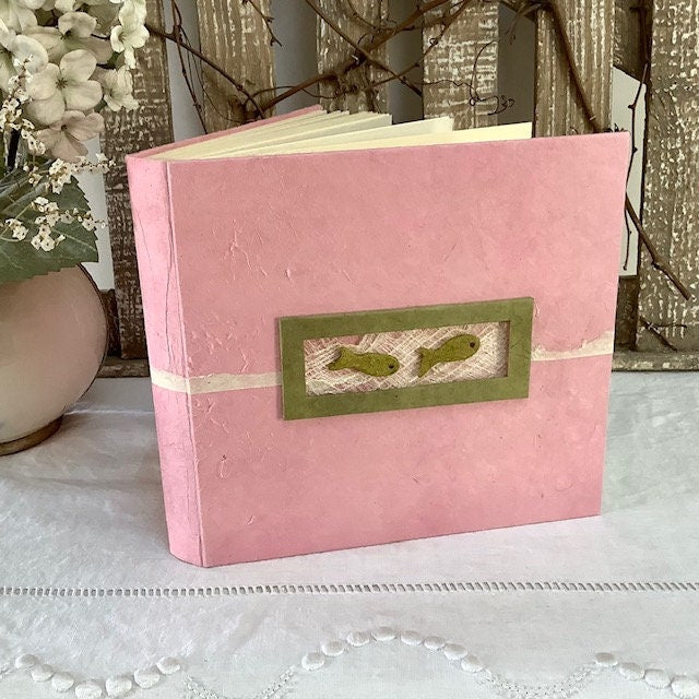 Album photos artisanal fait main, idéal pour naissance, scrapbooking… 19 feuilles avec papier fin de séparation entre chaque page. Fabriqué en France. A noter, album traditionnel à utiliser avec des coins adhésifs pour fixation photos