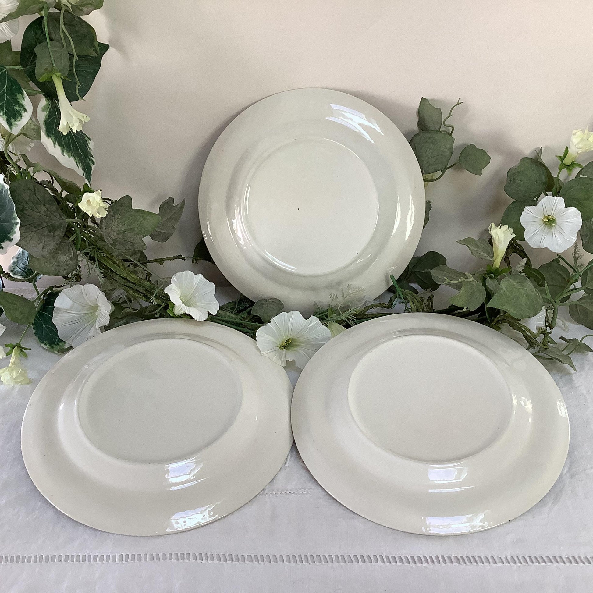 Trois assiettes à dessert en faïence bleu et blanc. Bon état, Légères traces et rayures d’usage.