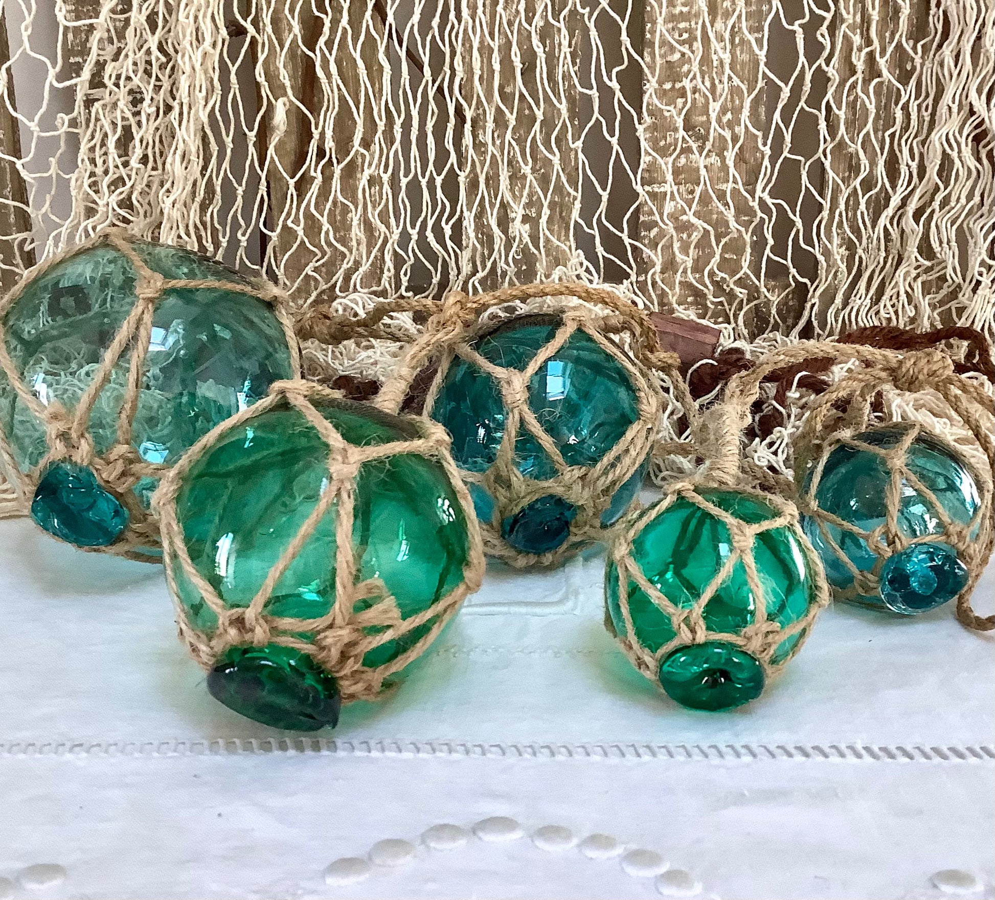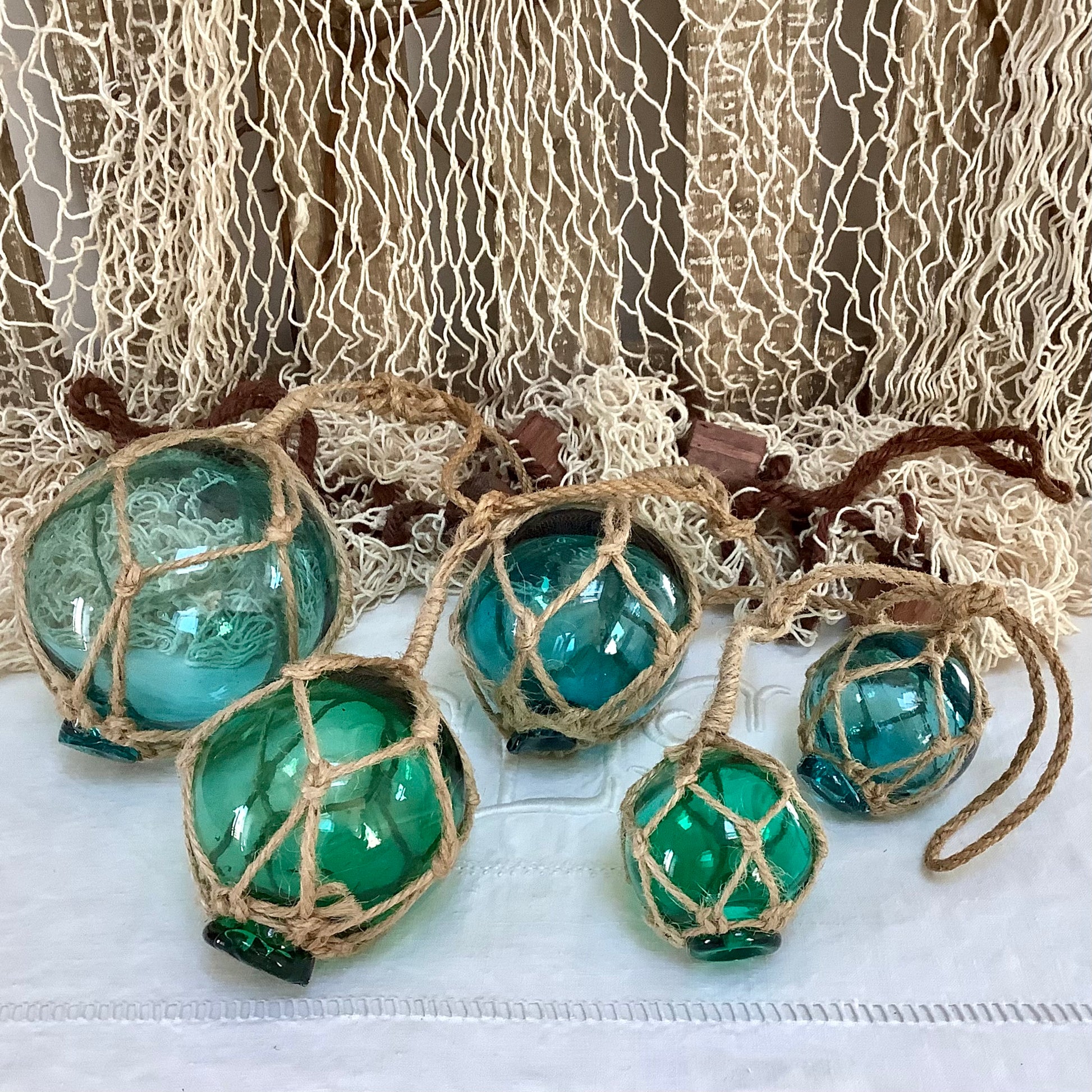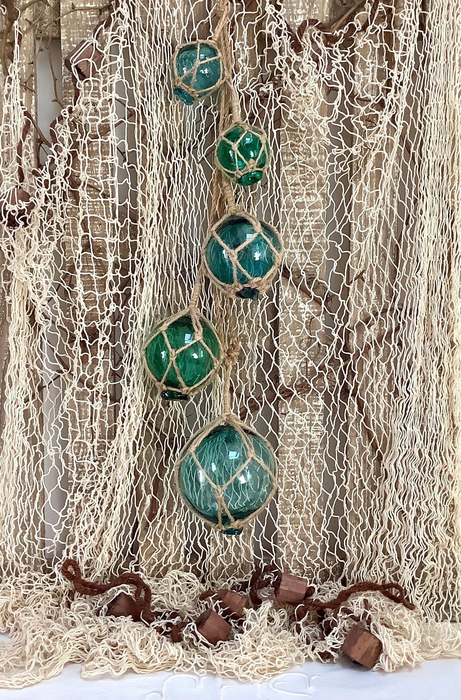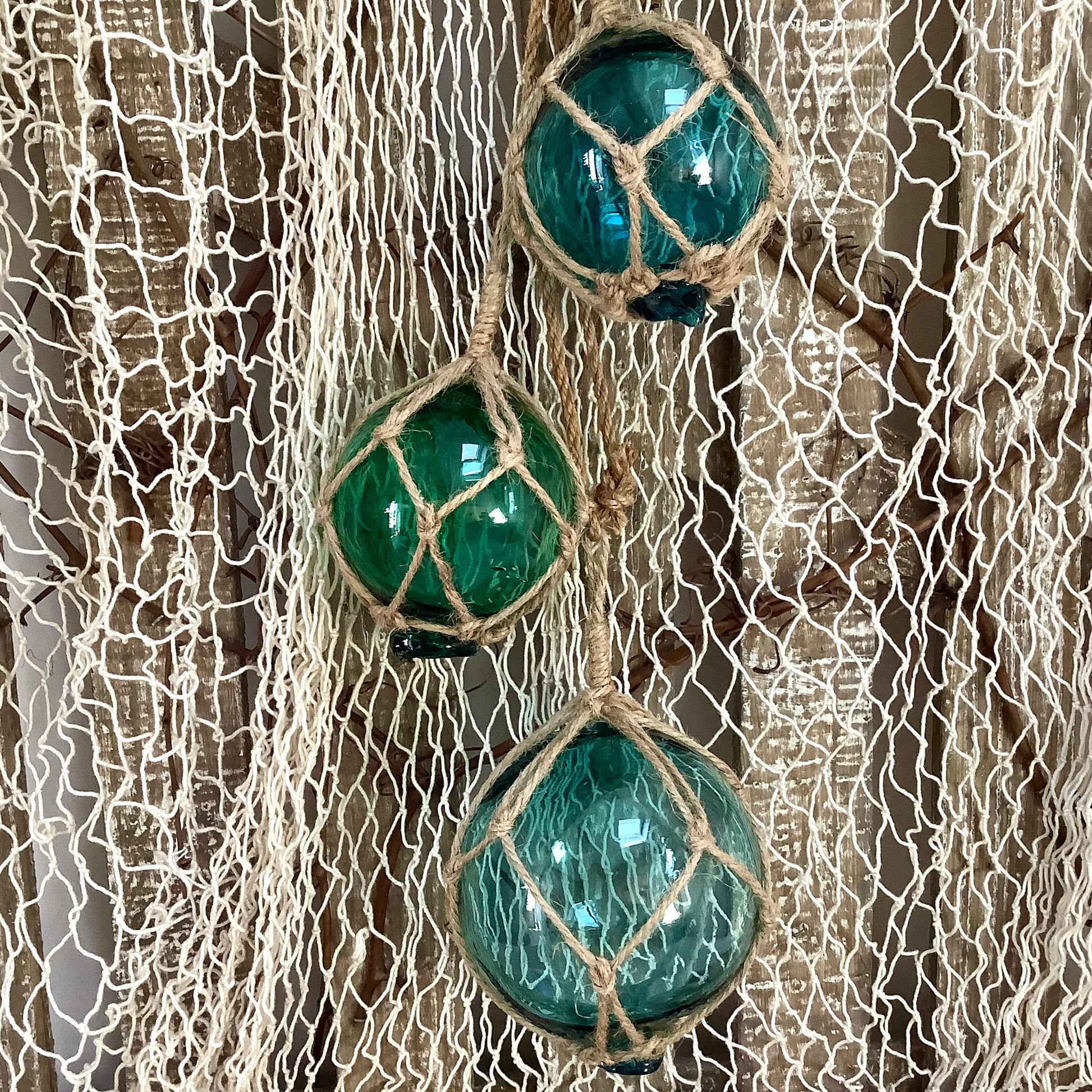 Guirlande de boules de casier verre bleu vert décoration marine ht 65 cm