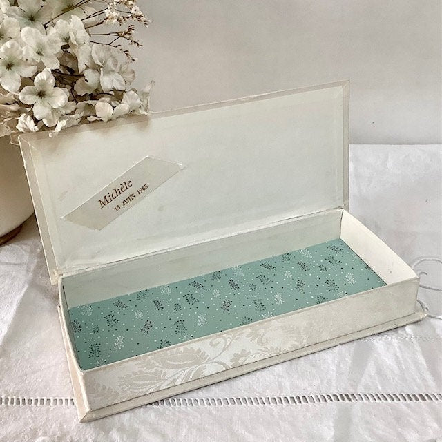 Boîte satin ivoire Michèle 1968 vintage