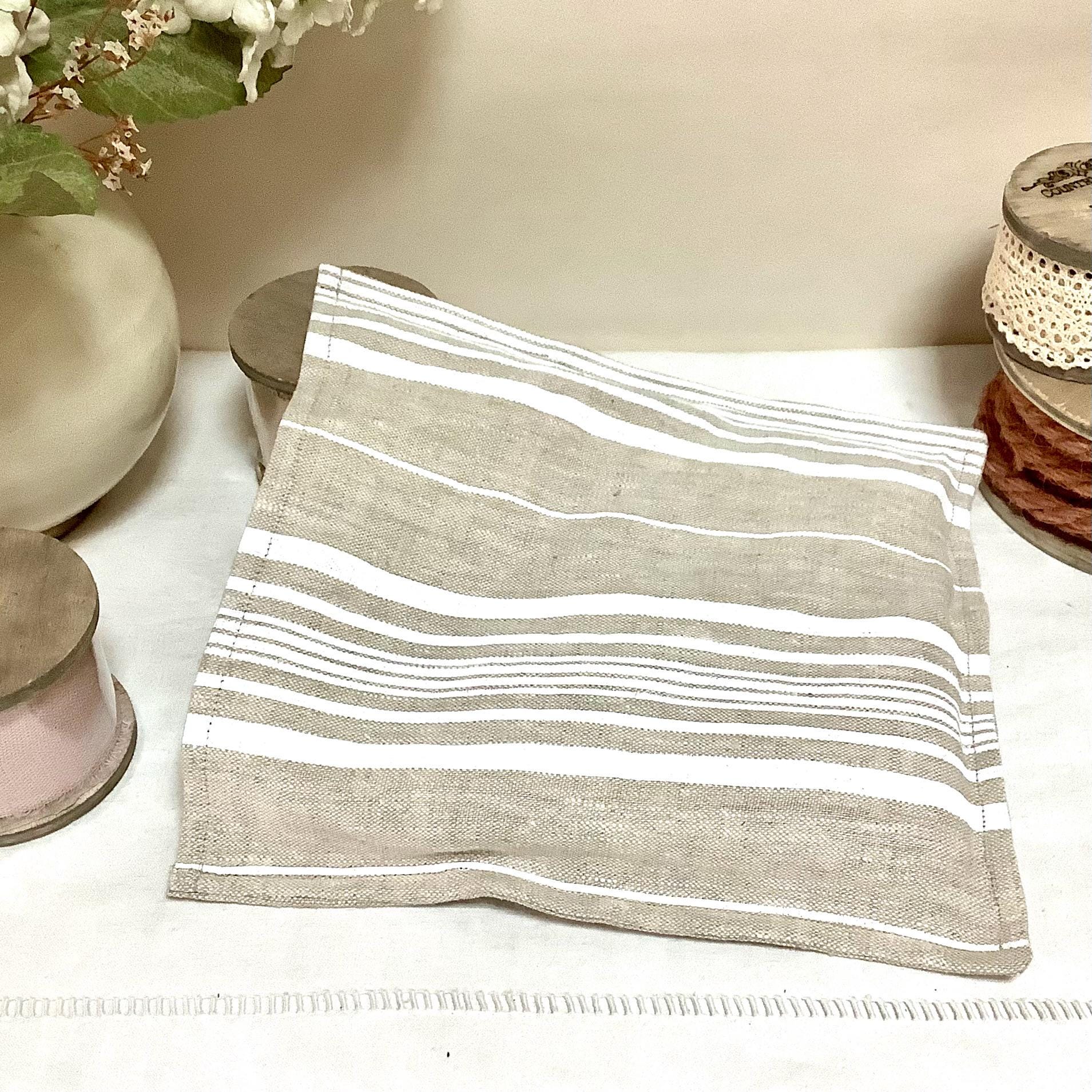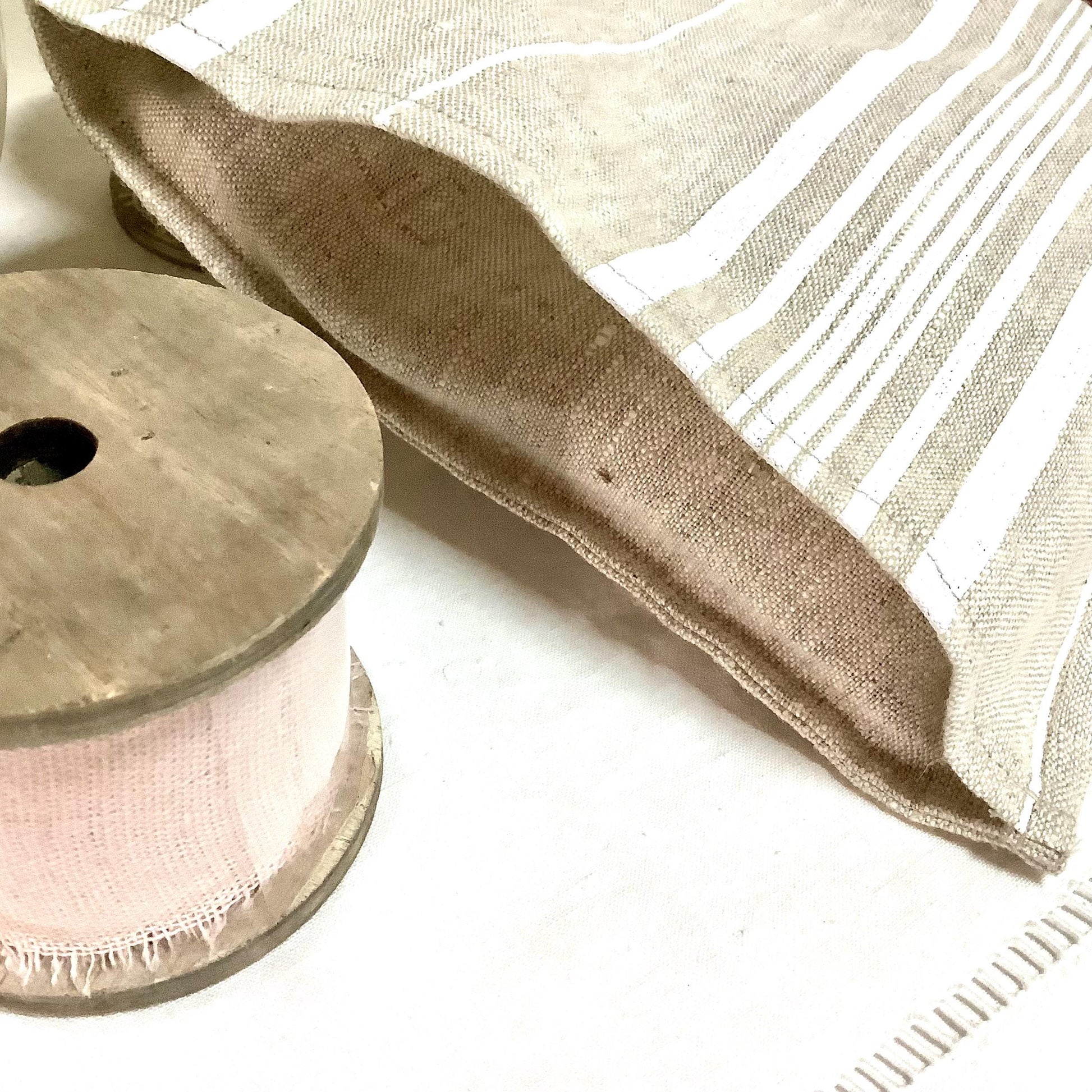 Housse (type taie oreiller) 22 cm x 24 cm - 100 % pur lin lavé 240 g/m2 lavable 30° (motifs rayures aléatoire)