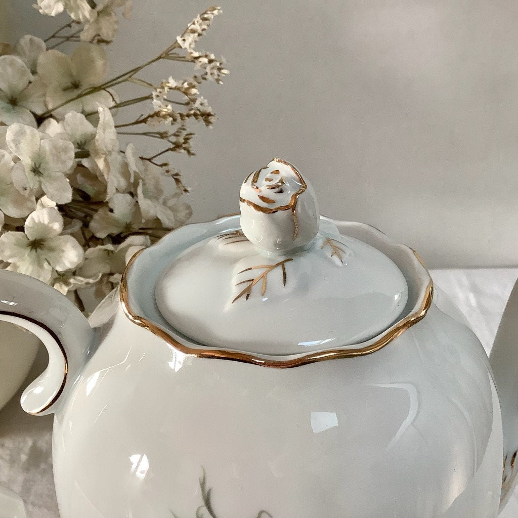 Cafetière théière verseuse porcelaine fleurs Lourioux vintage
