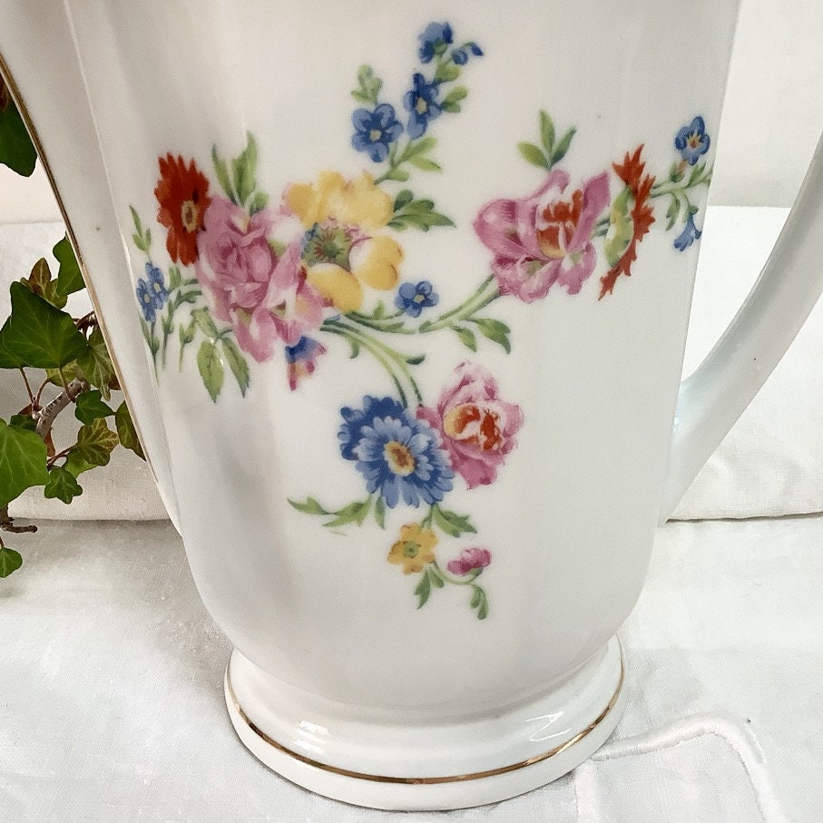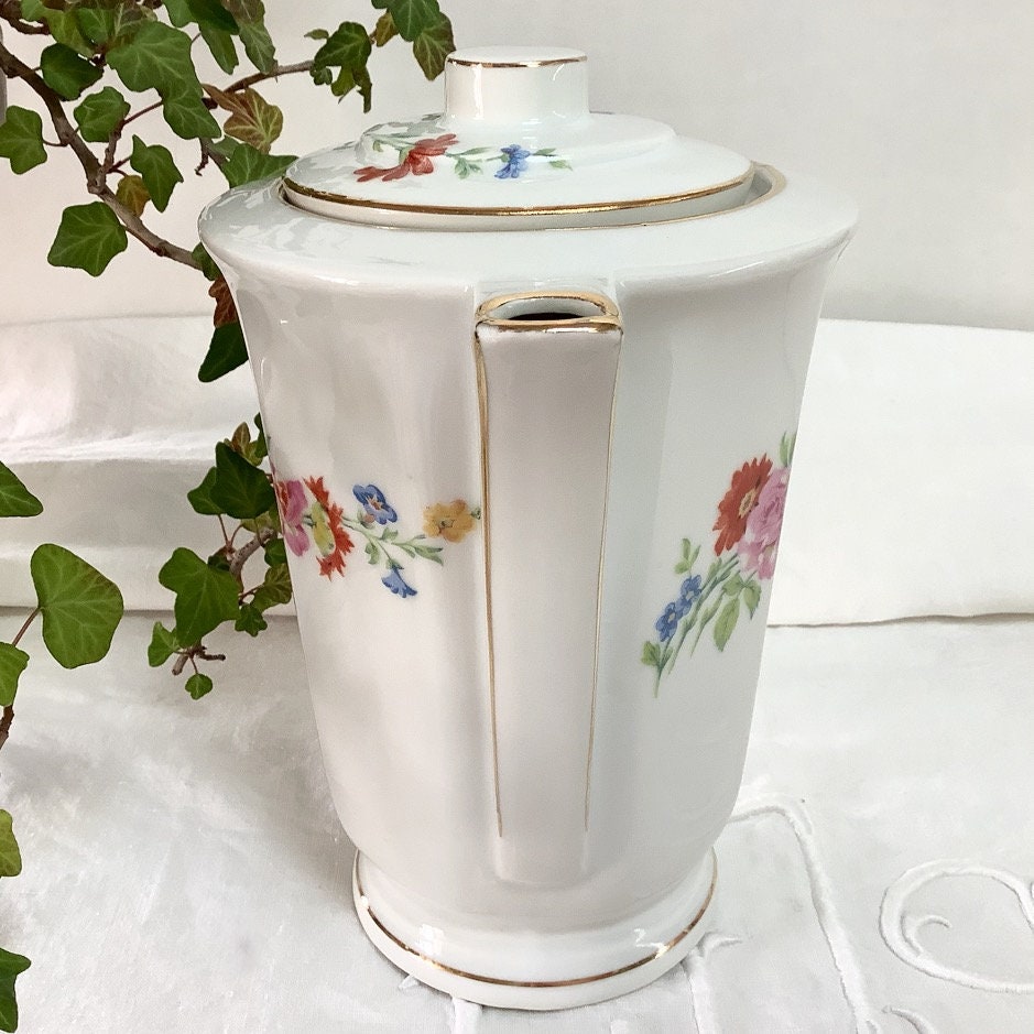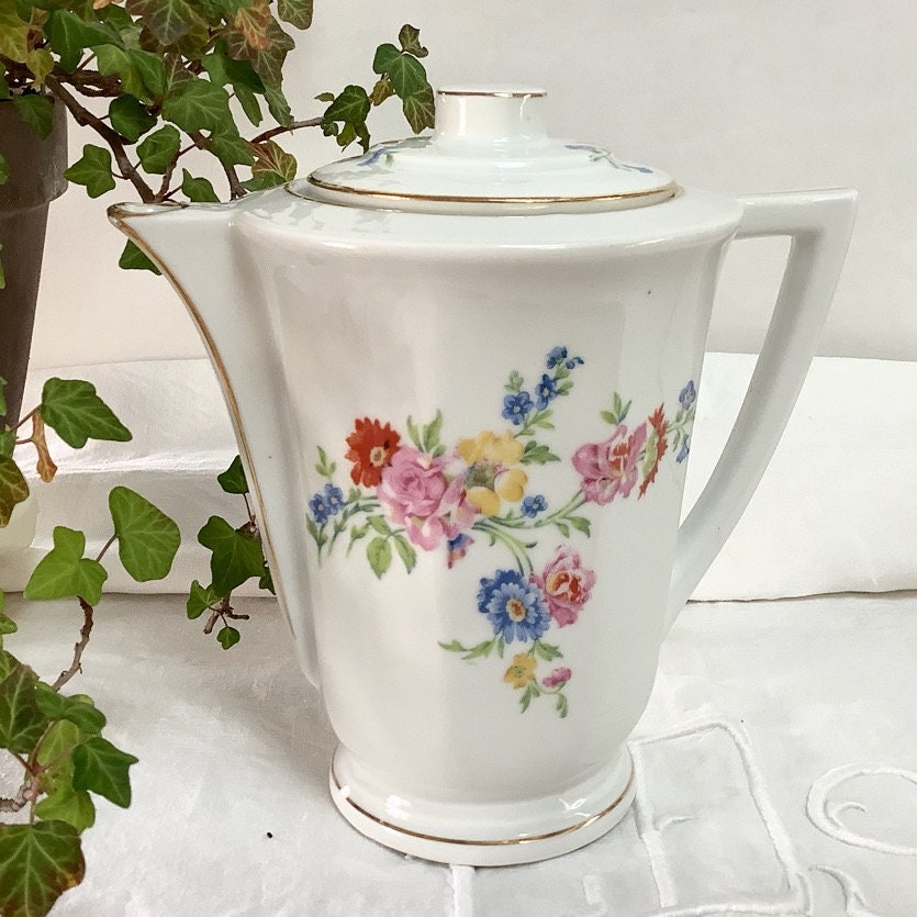 Cafetière théière verseuse porcelaine fleurs vintage