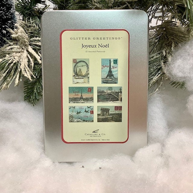 Coffret métal cartes postales pailletées vintage Joyeux Noël Paris Cavallini&Co.