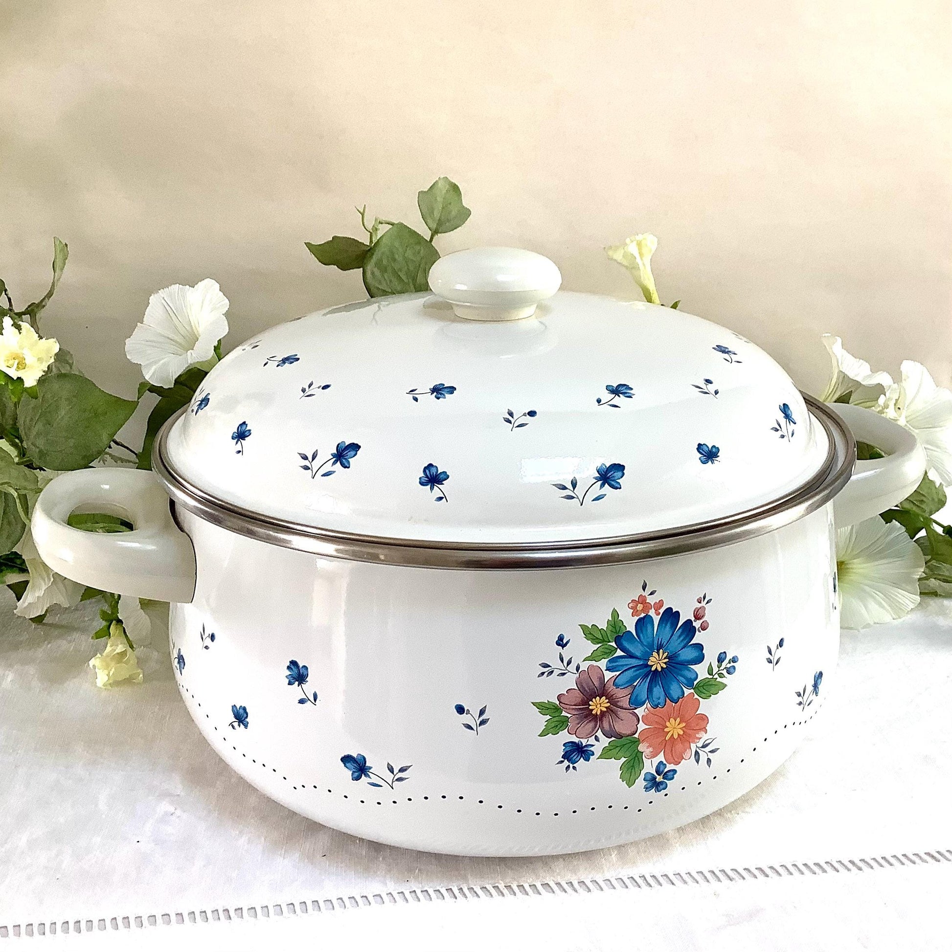 Cocotte émaillée faitout provincial bouquet vintage 80 modèle C