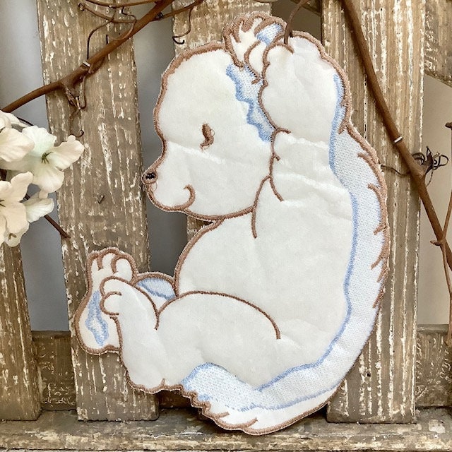 Écusson à coudre grand hérisson bleu vintage ht 22 cm