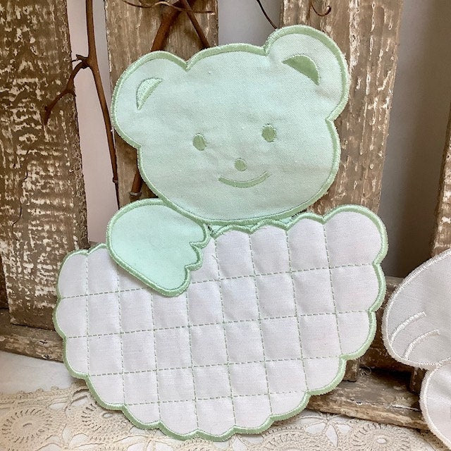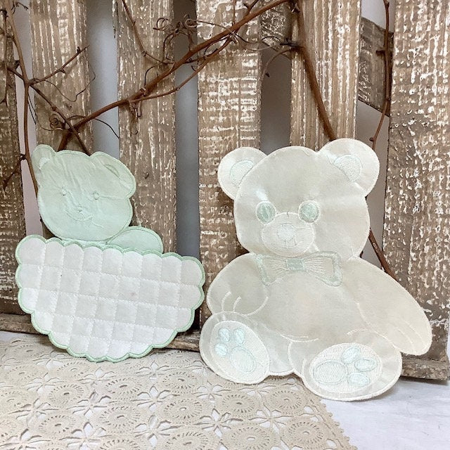 Deux grands écussons à coudre vintage motifs oursons ton vert