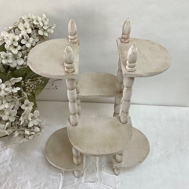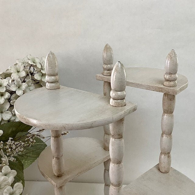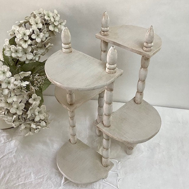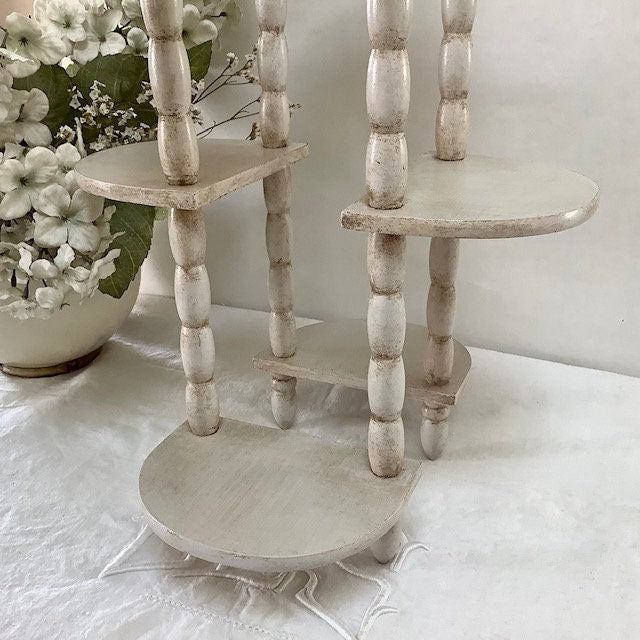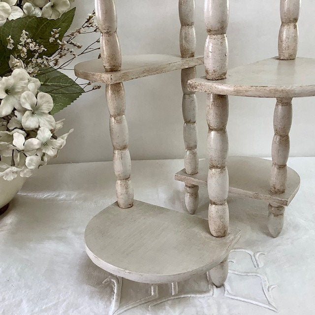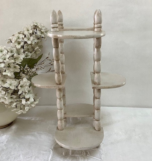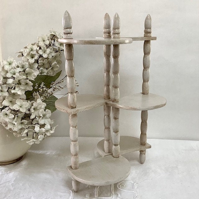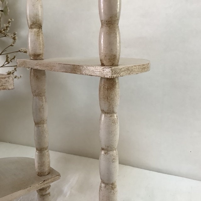 Étagère originale en bois, repeinte et patinée avec la particularité d’être amovible et/ou étirable.Les deux positions possibles sont visibles sur les photos. Entretien chiffon doux