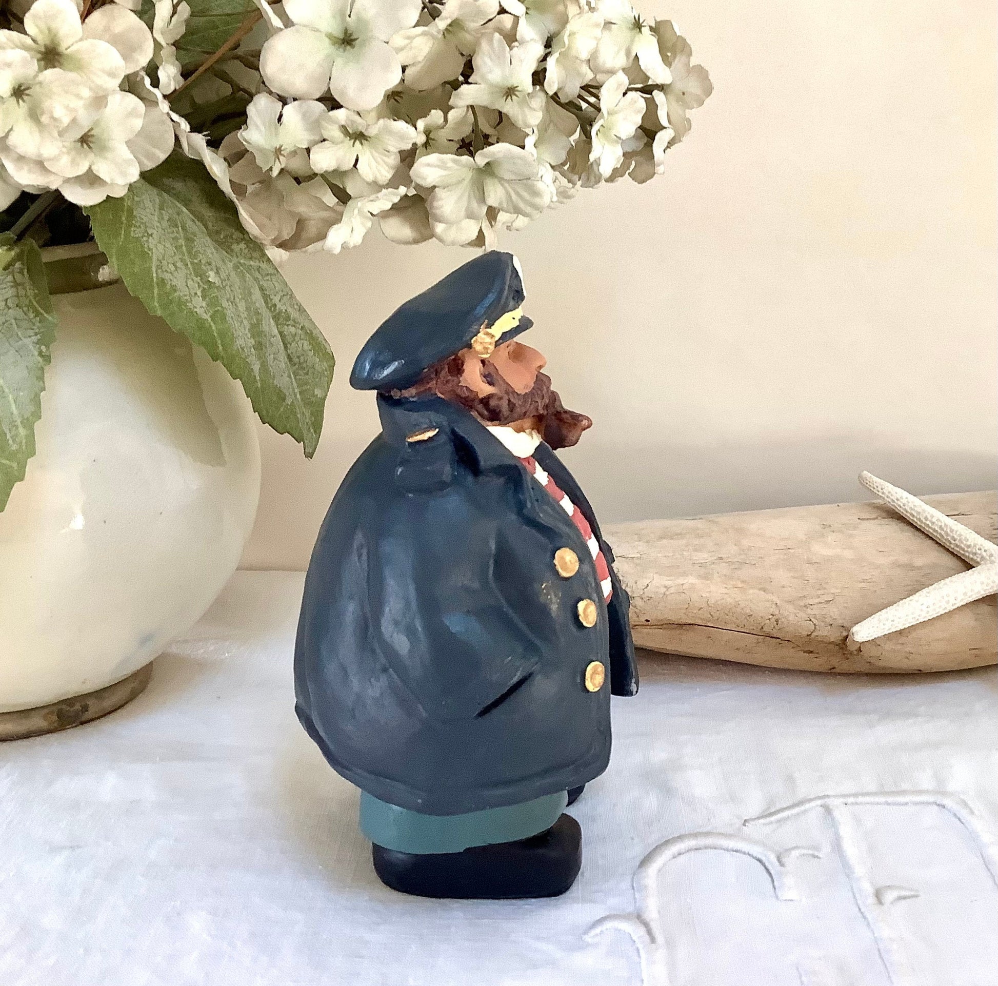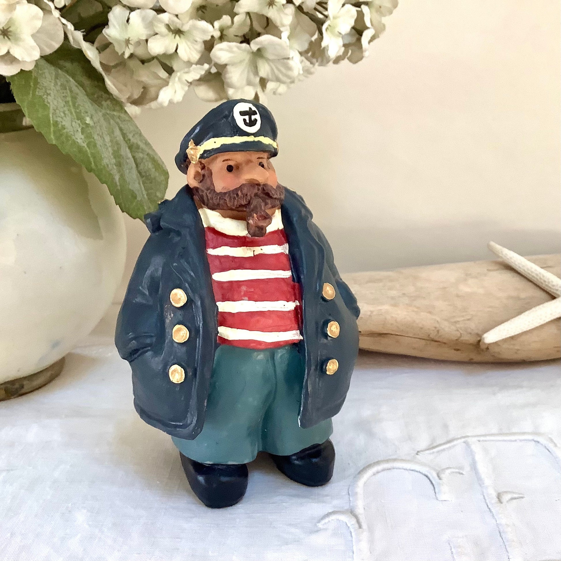 Capitaine de style naïf avec son pull rayé rouge. Figurine moulée en résine et peinte à la main.