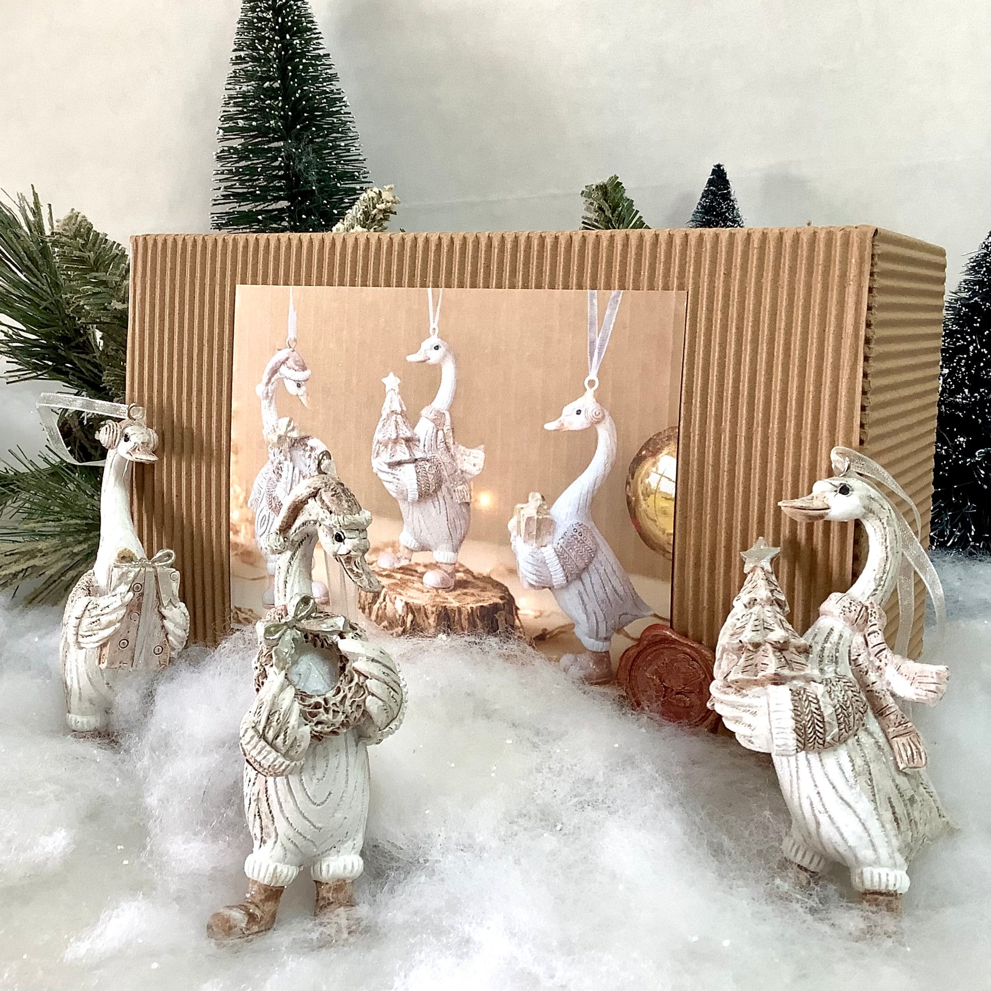 Figurines oies beige décoration de Noël résine ht 10.5 cm