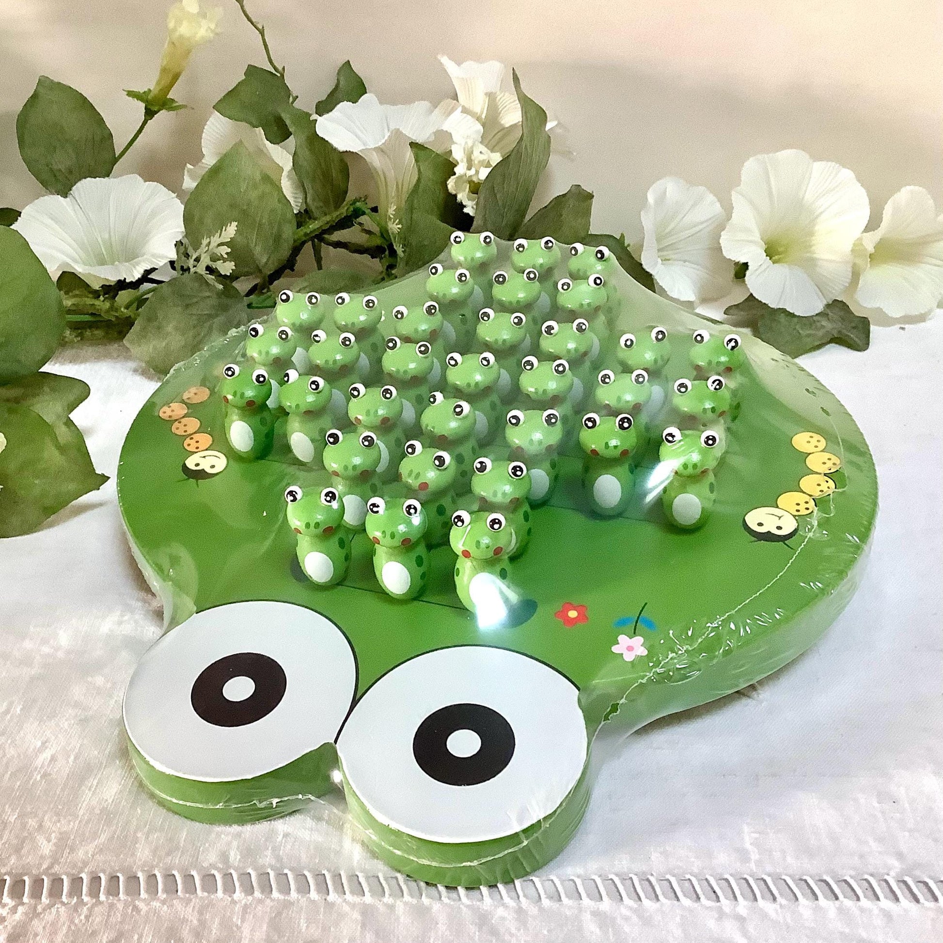 Jeu solitaire en bois pions grenouilles. Un jeu traditionnel pour petits et grands, le but, réduire le nombre de grenouilles étape par étape. Un jeu d'adresse et de stratégie qui favorise l'imagination logique et la capacité de concentration.
