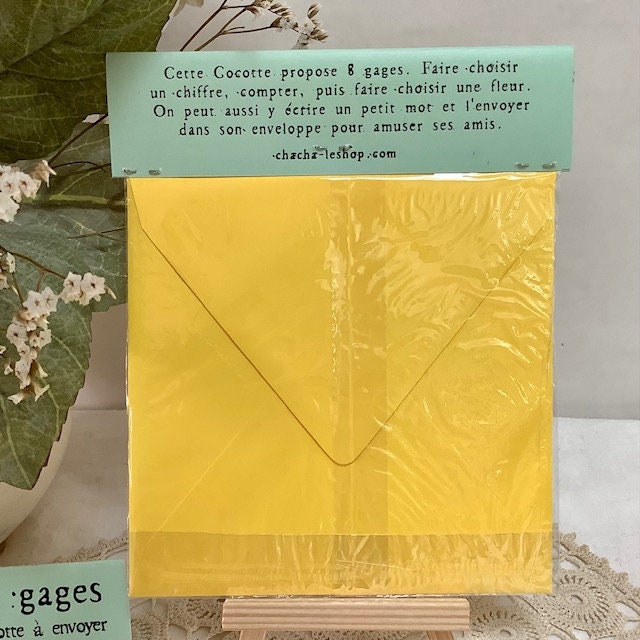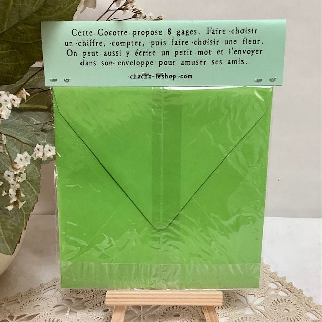 Enveloppe : 14 cm x 14 cm - Cocotte: 9.5 cm x 9.5 cm