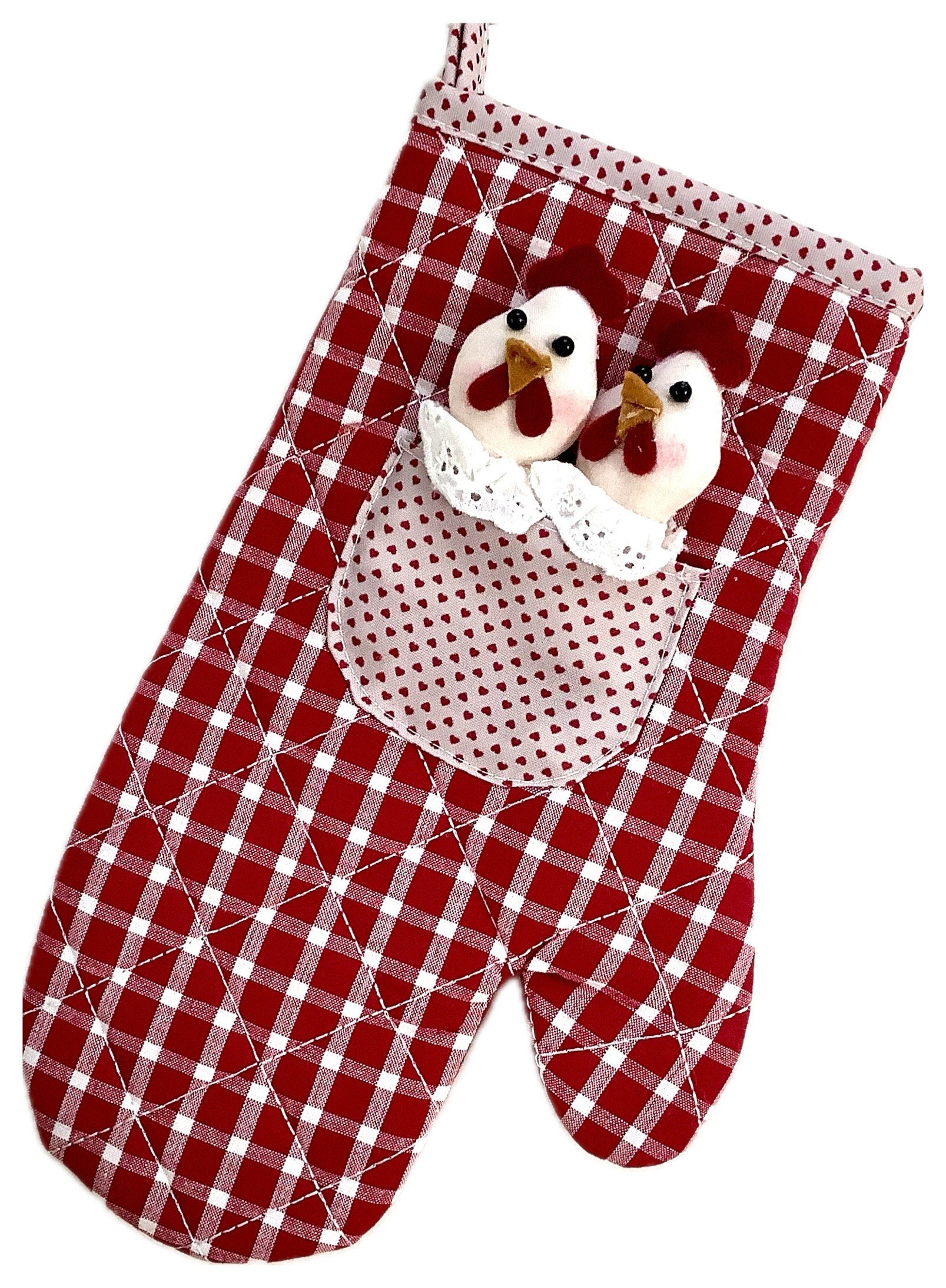 Maniques gants de four poules carreaux rouge et cœur la galleria ht 30 cm