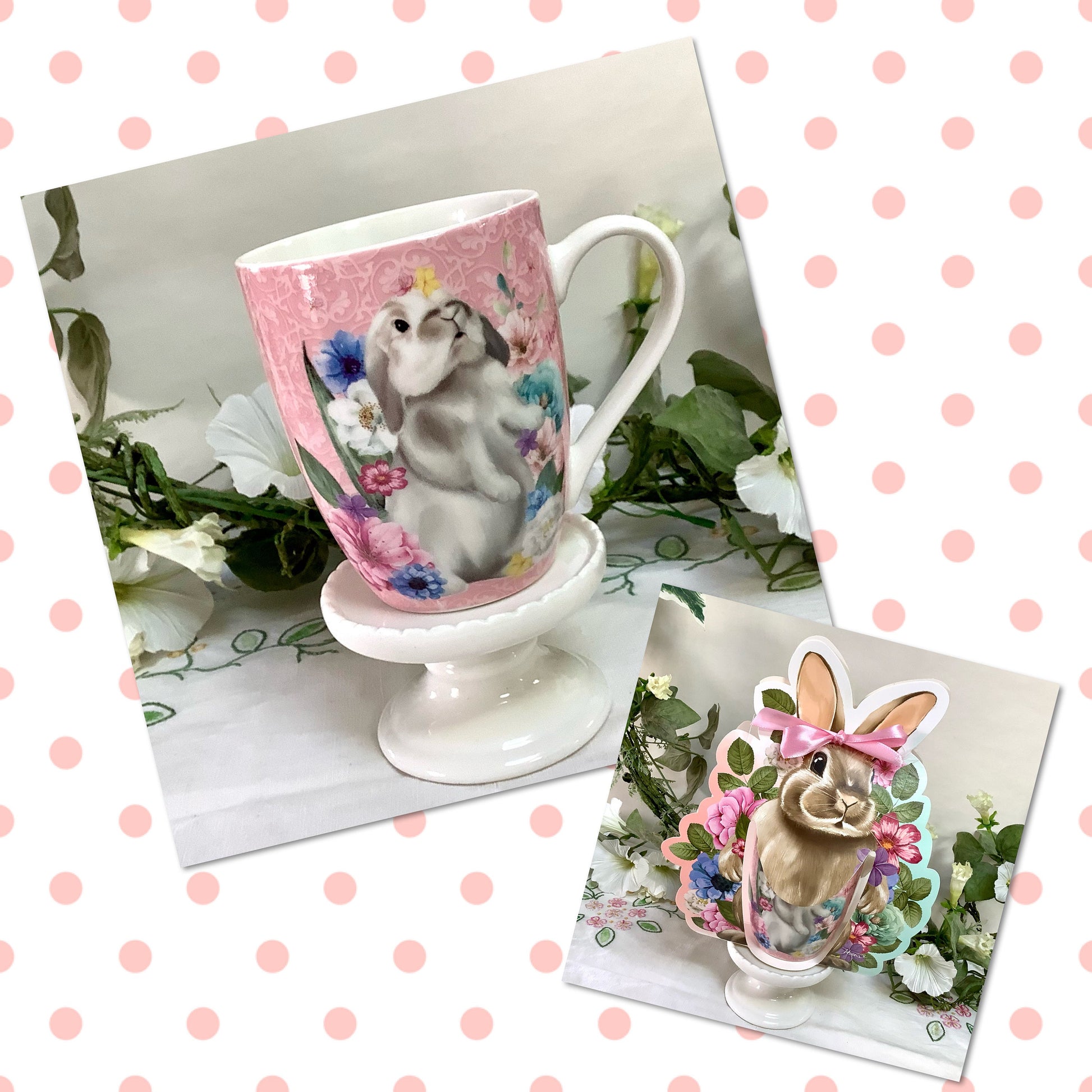 Un mug en porcelaine, fond rose motifs lapin. Jolies finitions, livré avec pochette cadeau lapin.