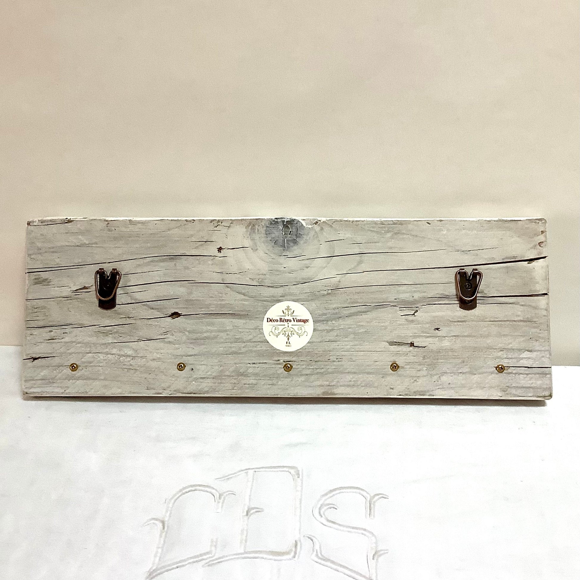 Longueur 42 cm - hauteur 14 cm - épaisseur 2.5 cm Accroche x 5: diamètre 2.5 cm