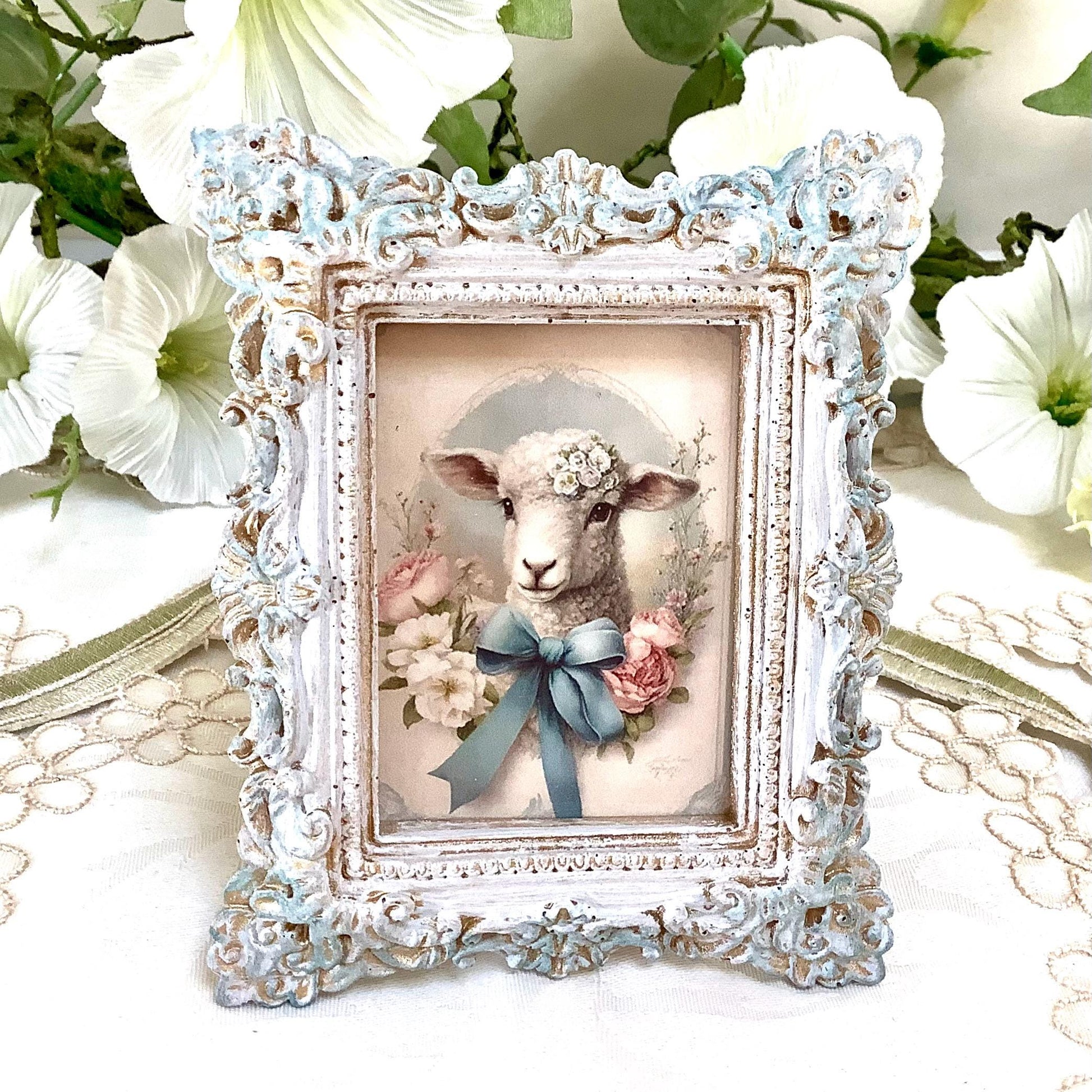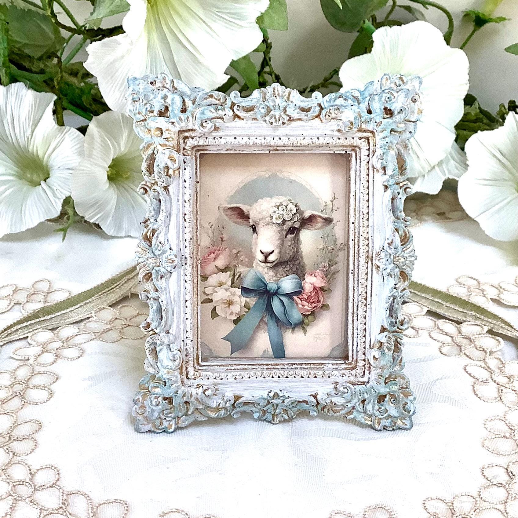 Cadre miniature baroque patiné bleu mouton 10 cm x 8 cm modèle C