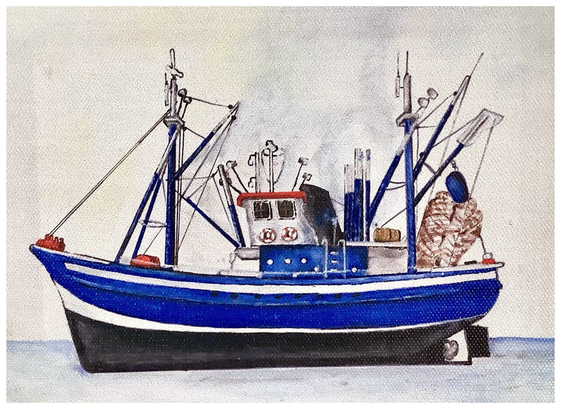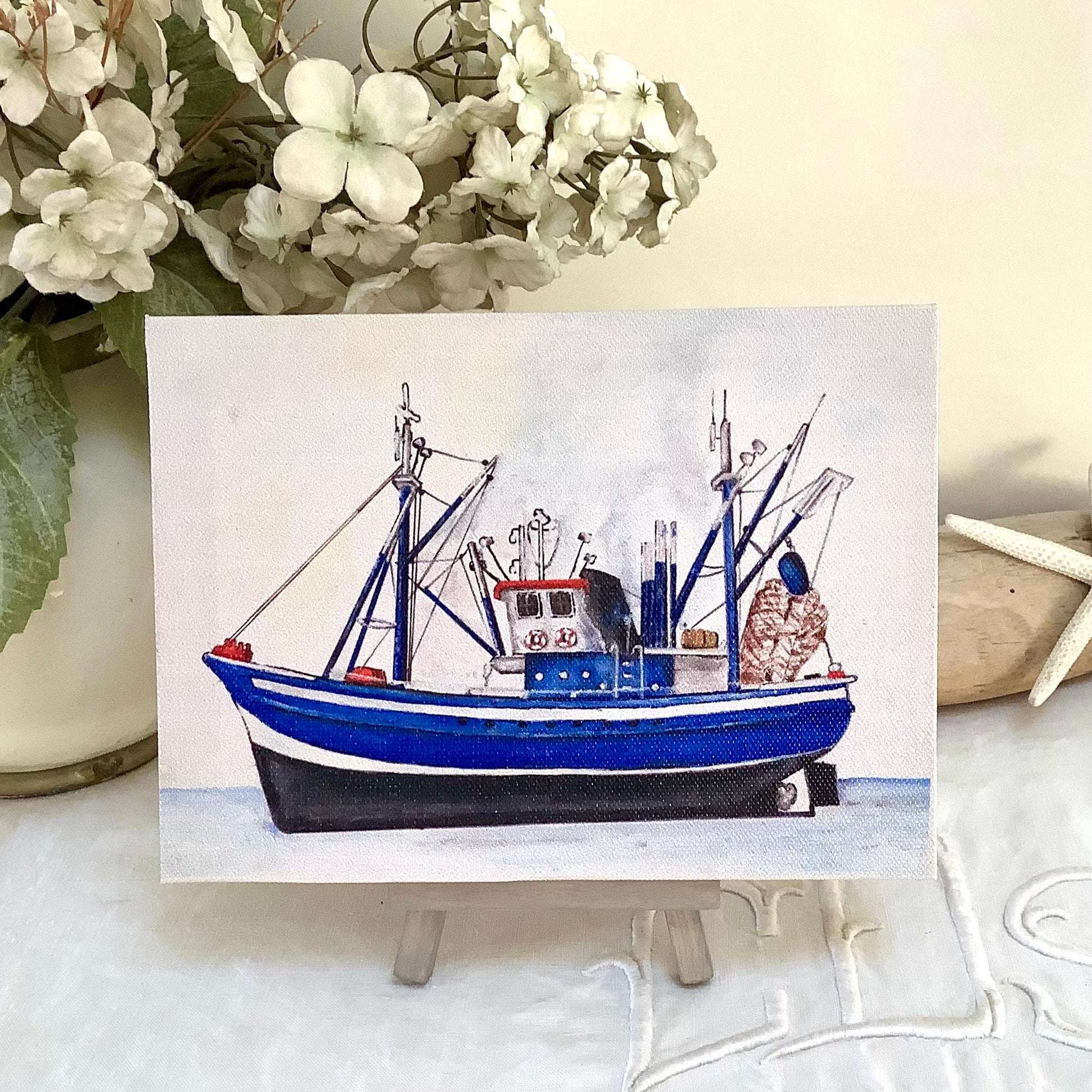 Petit tableau marin bateau chalutier chevalet décoration marine 18 x 13