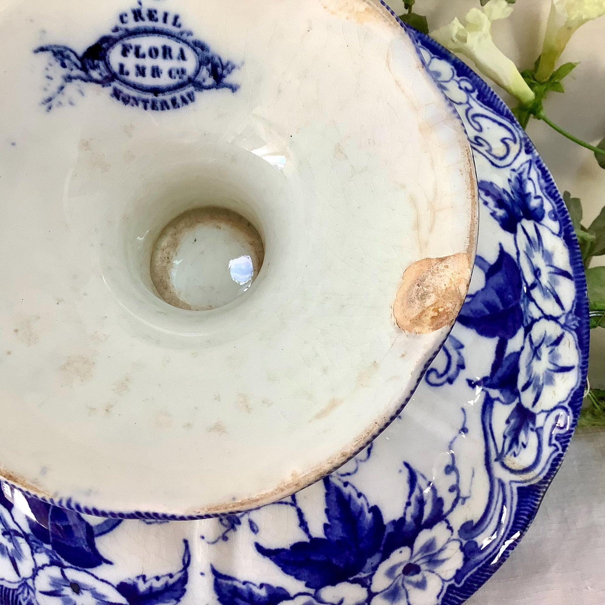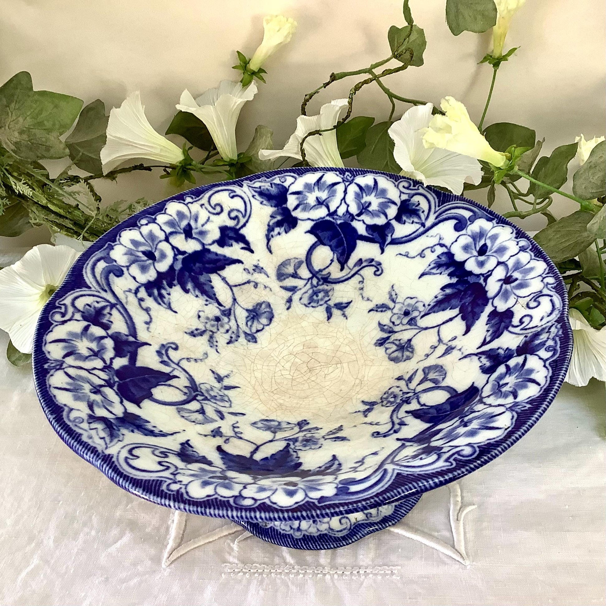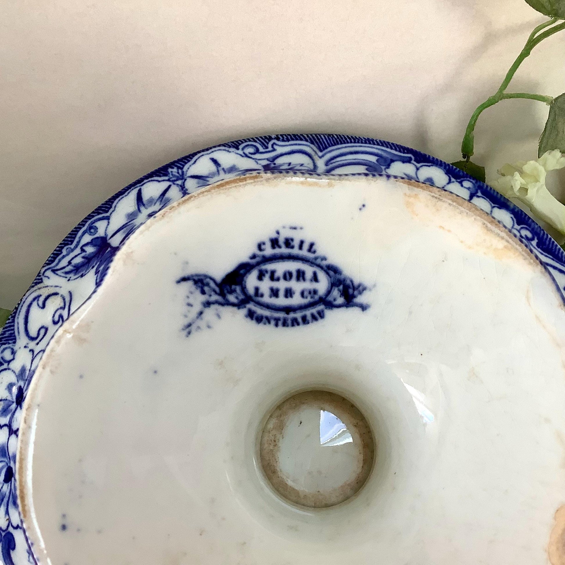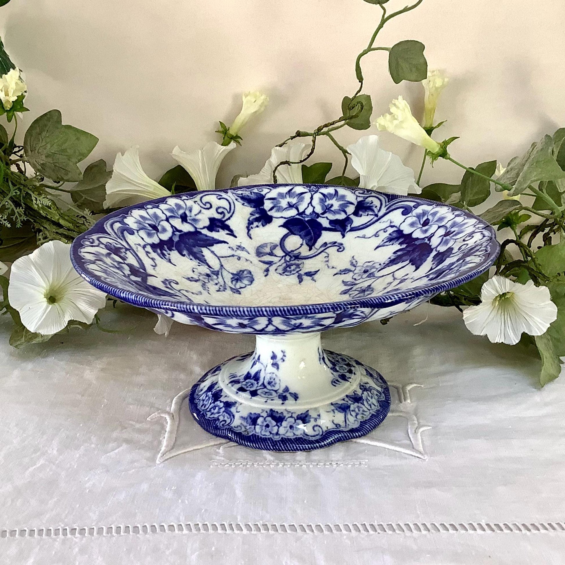 Plat serviteur piédouche compotier bleu faïence creil Flora nontereau 1855 vintage