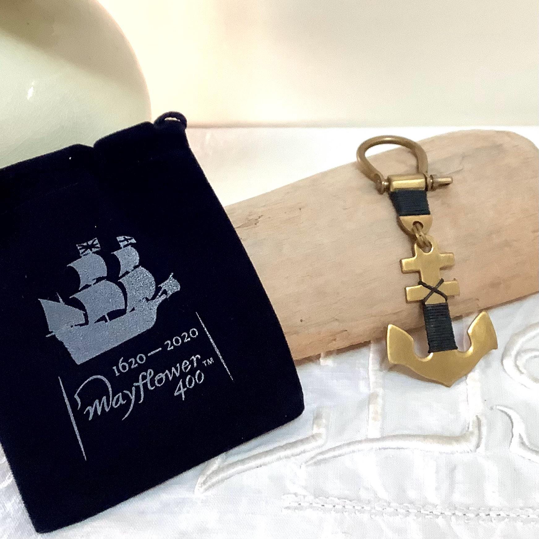 Porte clés marin ancre laiton vieilli vintage pochon velours