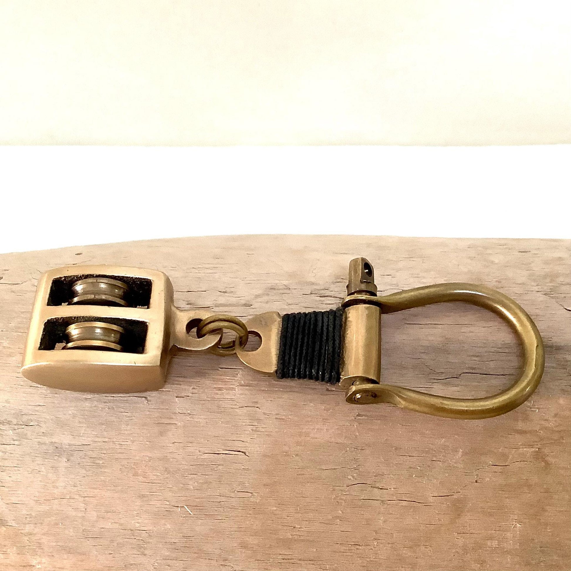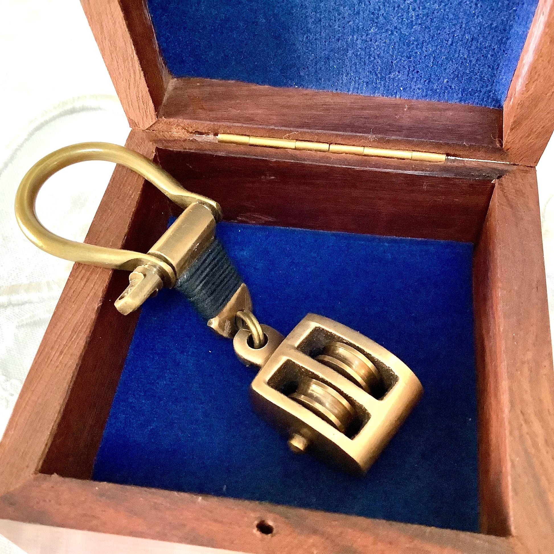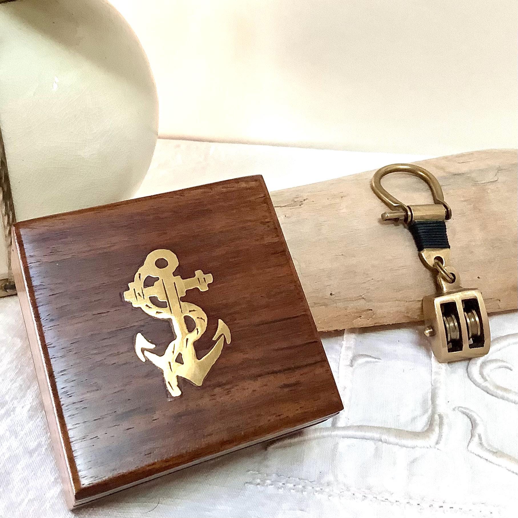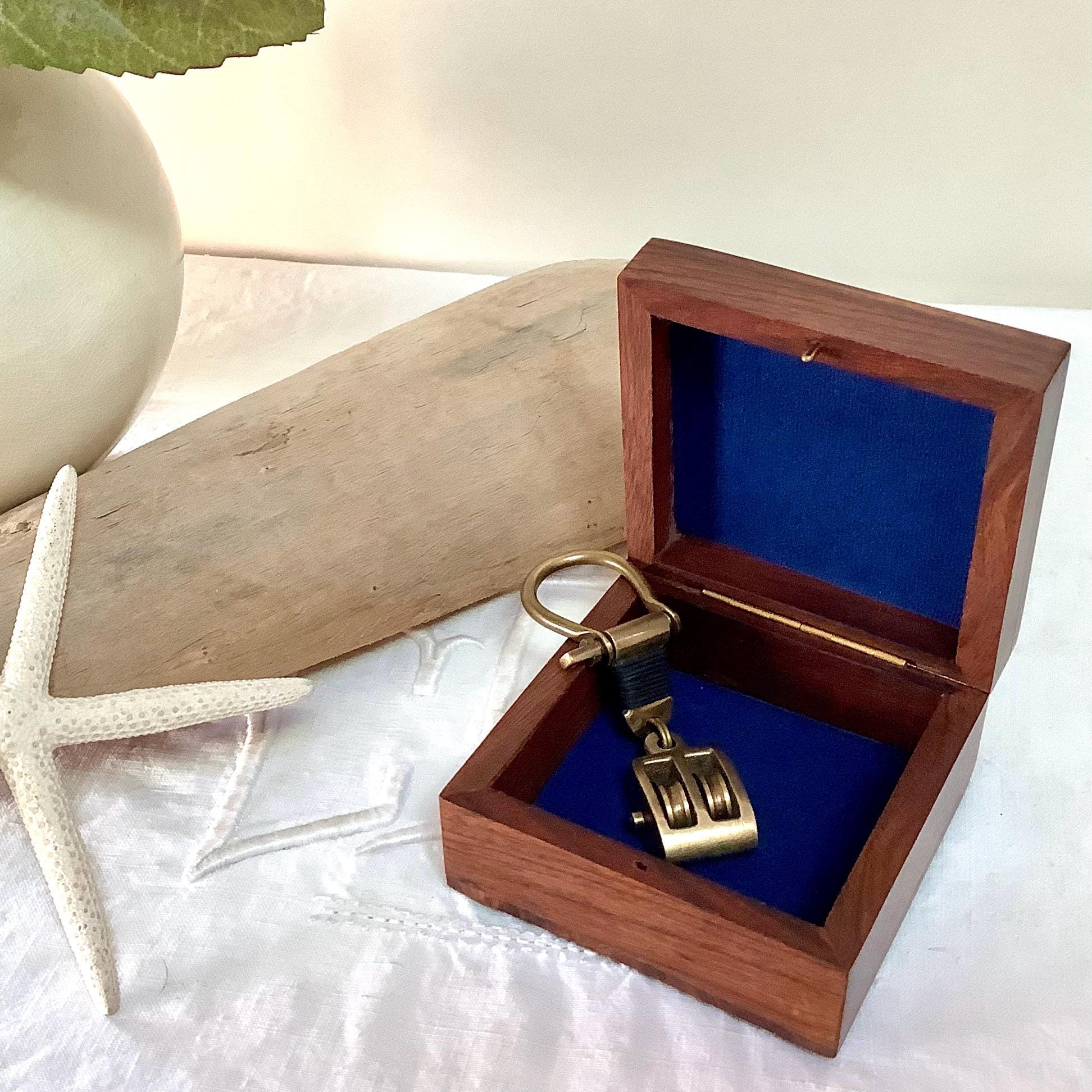 Porte clés marin poulie laiton vieilli vintage boîte palissandre