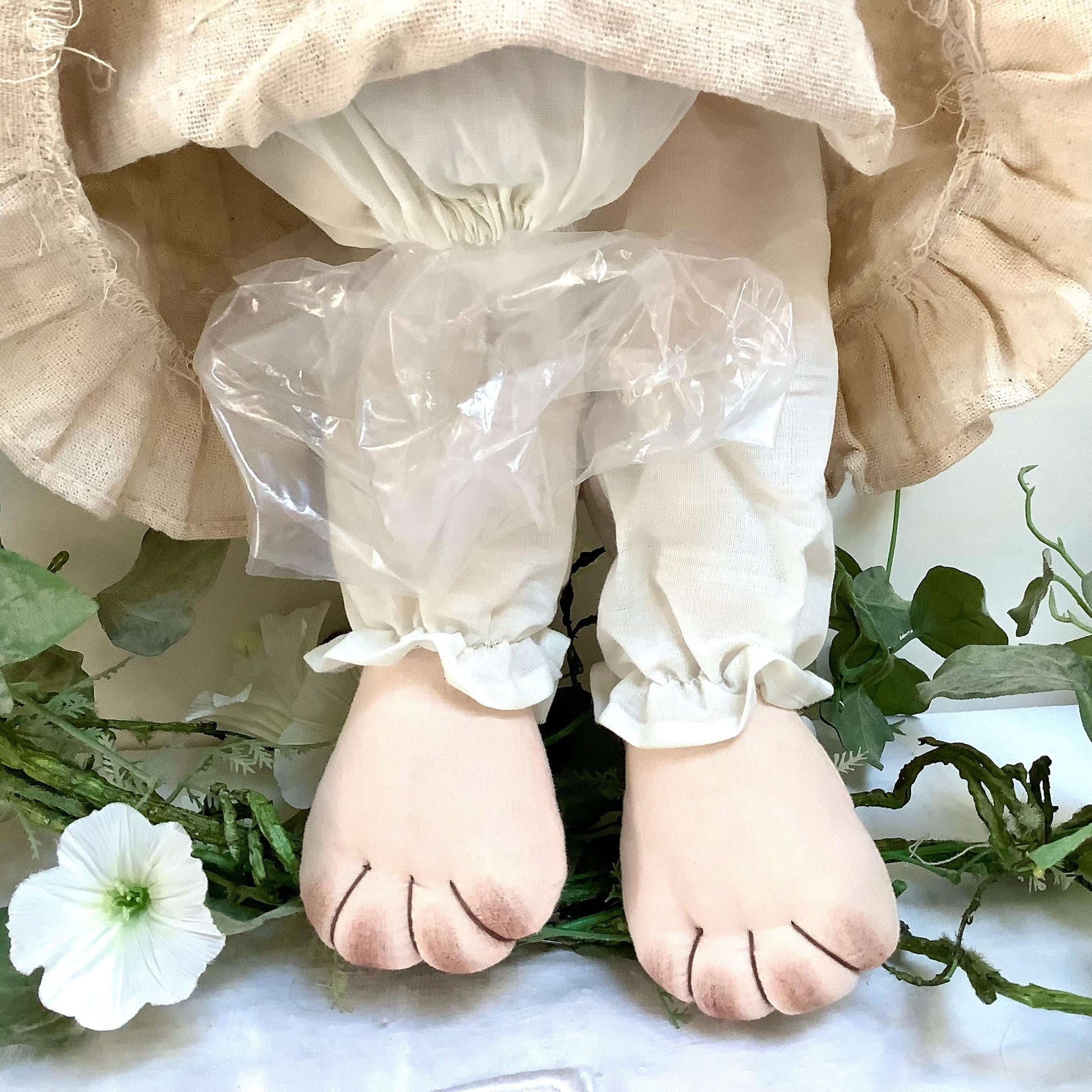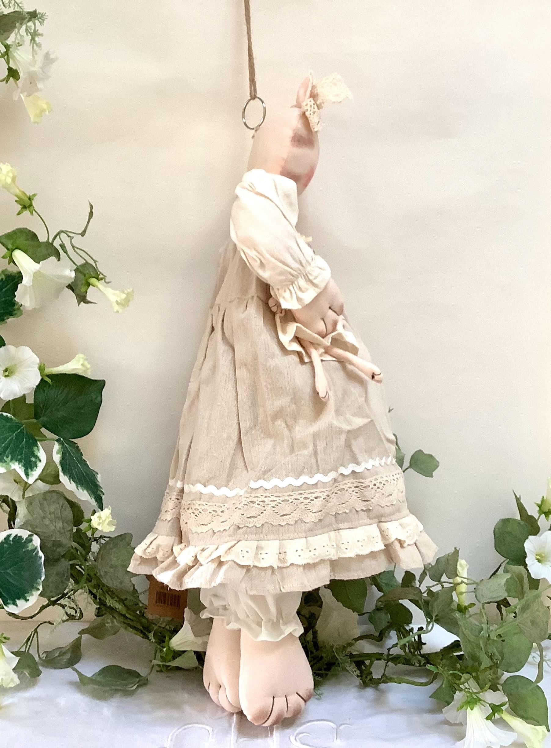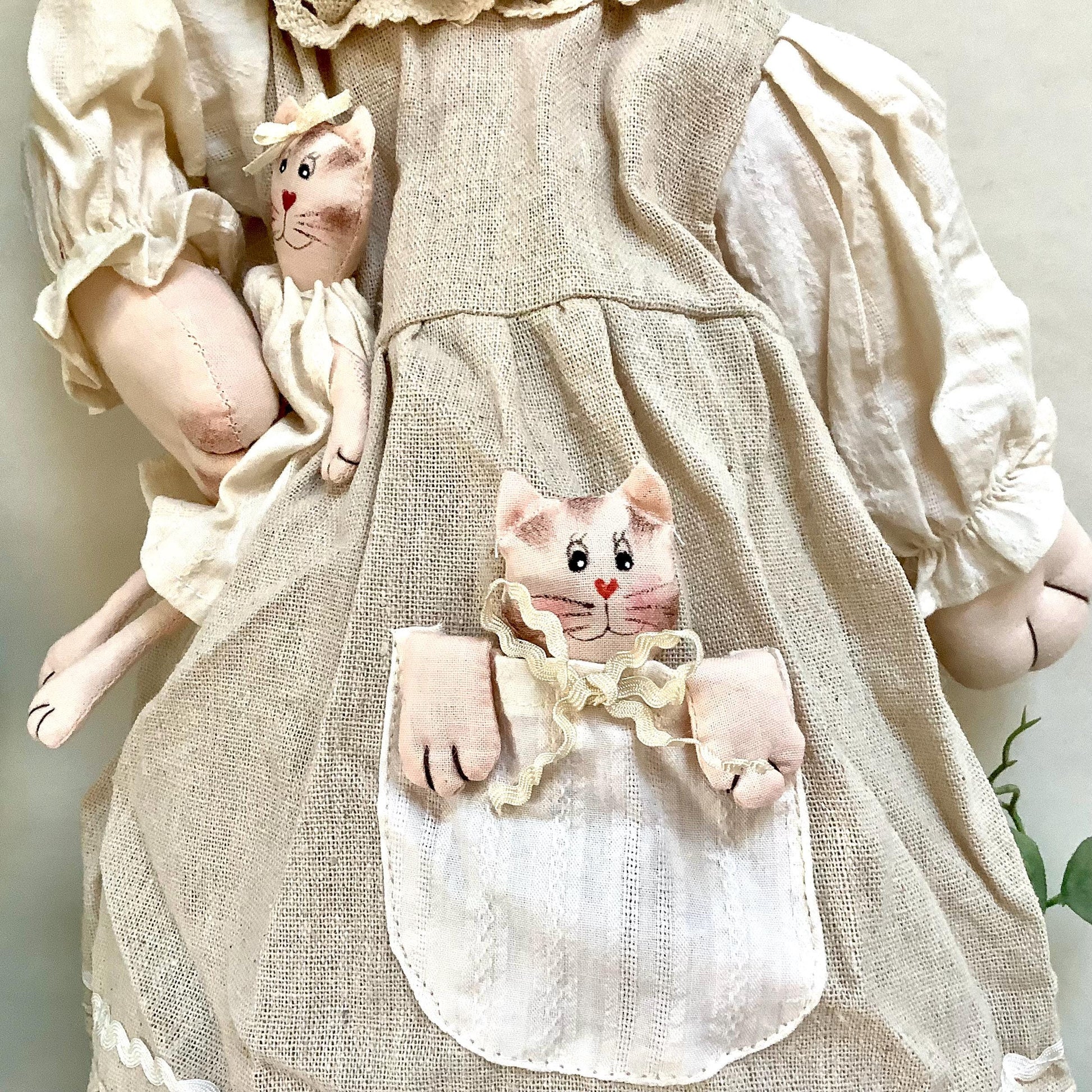 Porte sacs chat robe lin écrue avec deux chatons vintage ht 55 cm