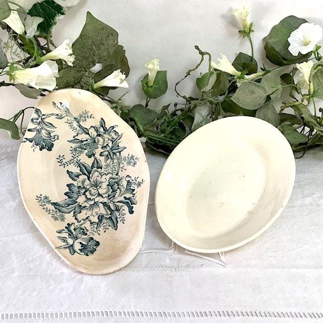 Ravier motifs vert: 24.5 cm x 14 cm - ht 3 cm - Ravier blanc : 21 cm x 14.5 cm - ht 3 cm