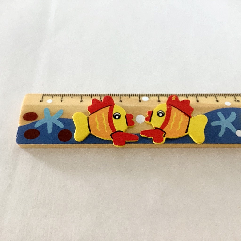 Deux petites règles en bois de 18 cm Poissons Bateaux. État neuf, jolies finitions