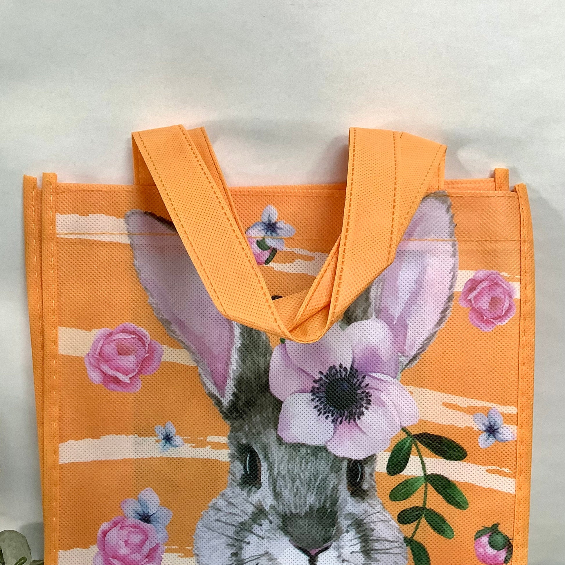 Un sac en intissé couleur orange avec motifs lapin. Jolies finitions