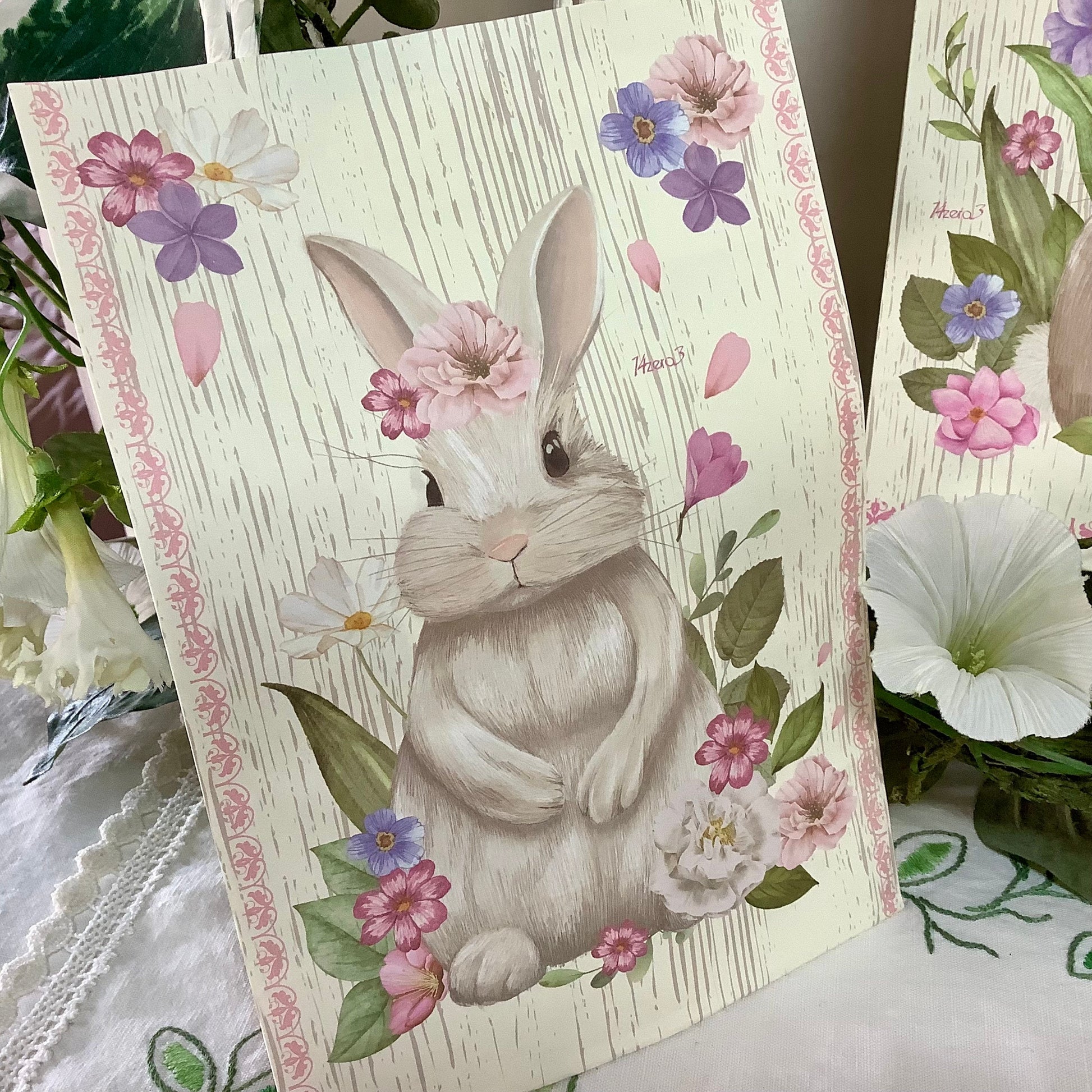 Sachets anses papier x 3 motif lapin ht 21 cm