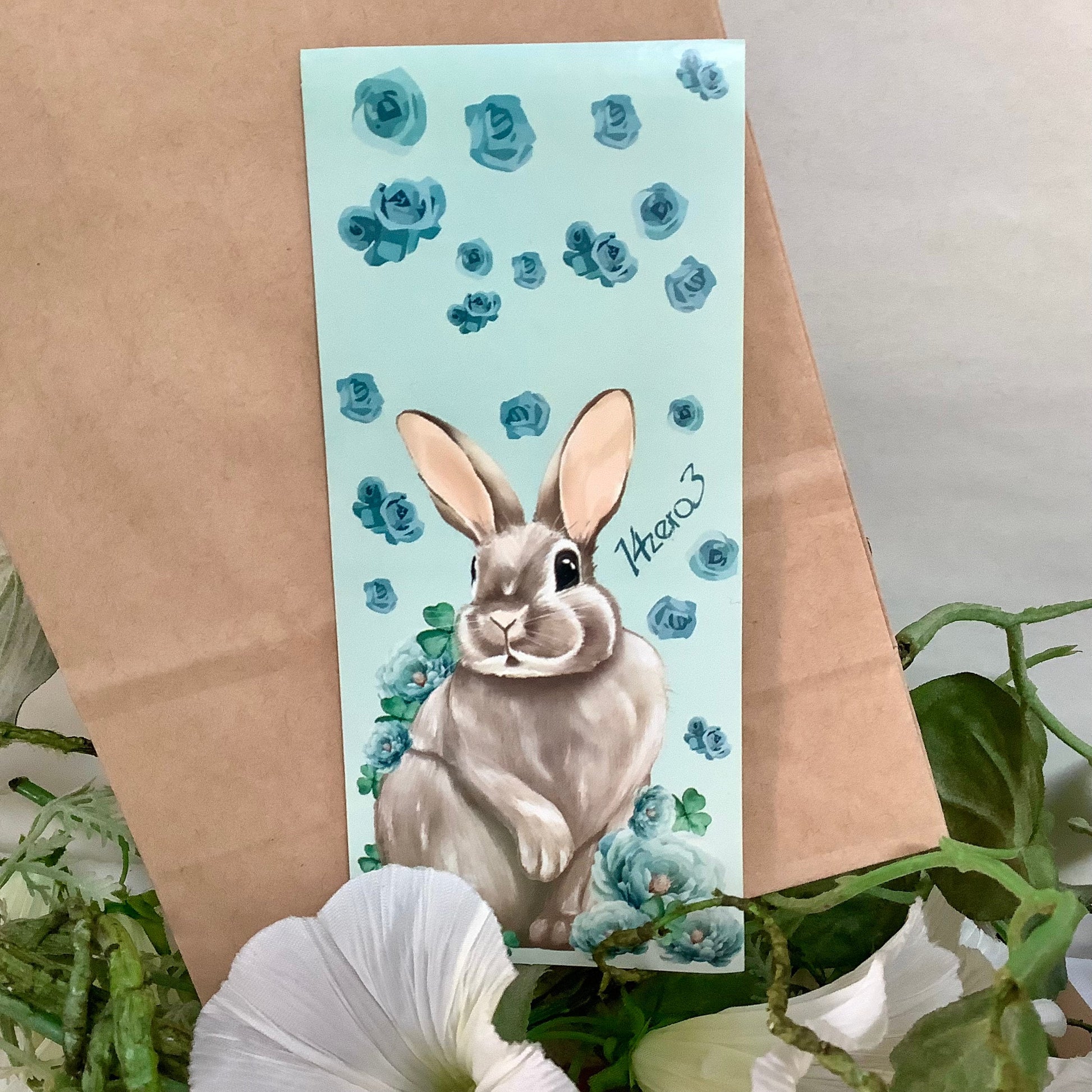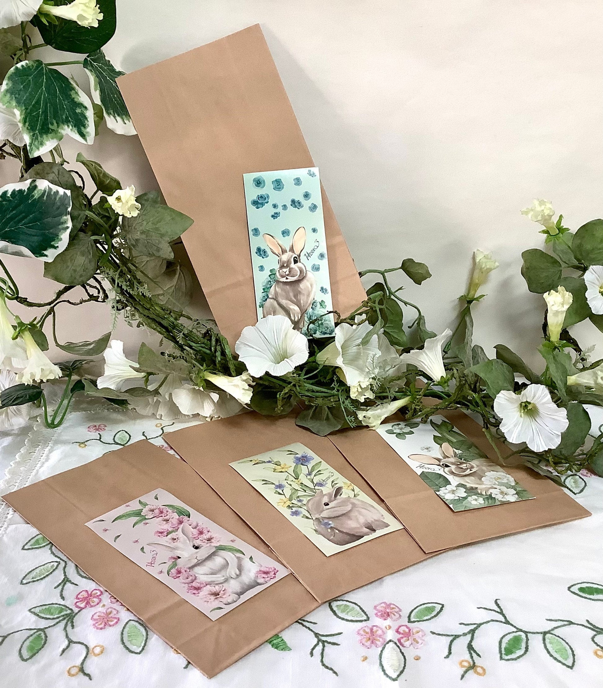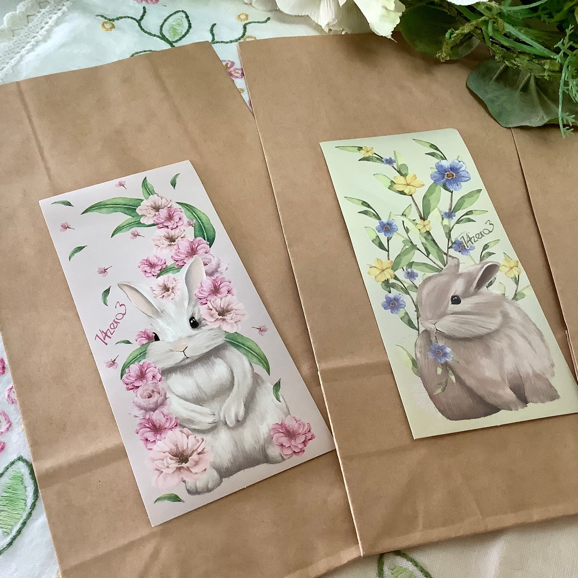 Quatre sachets en papier kraft avec quatre étiquettes autocollantes motifs lapins.