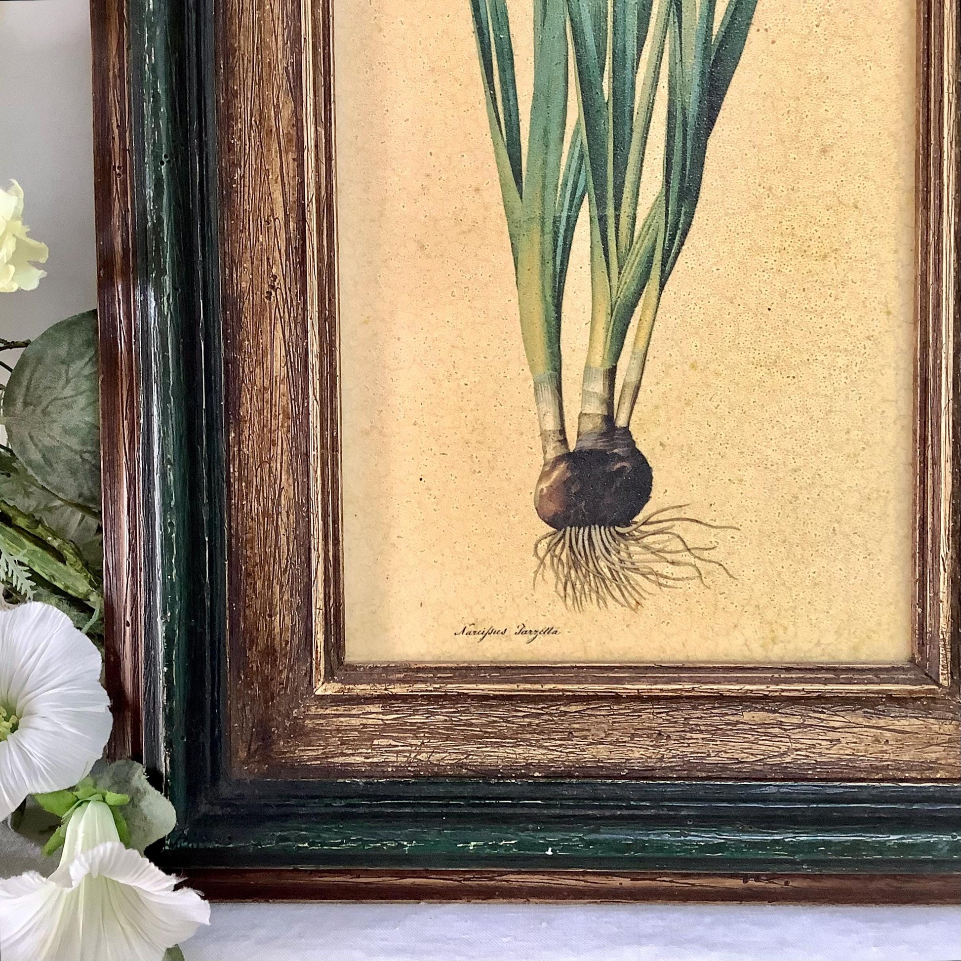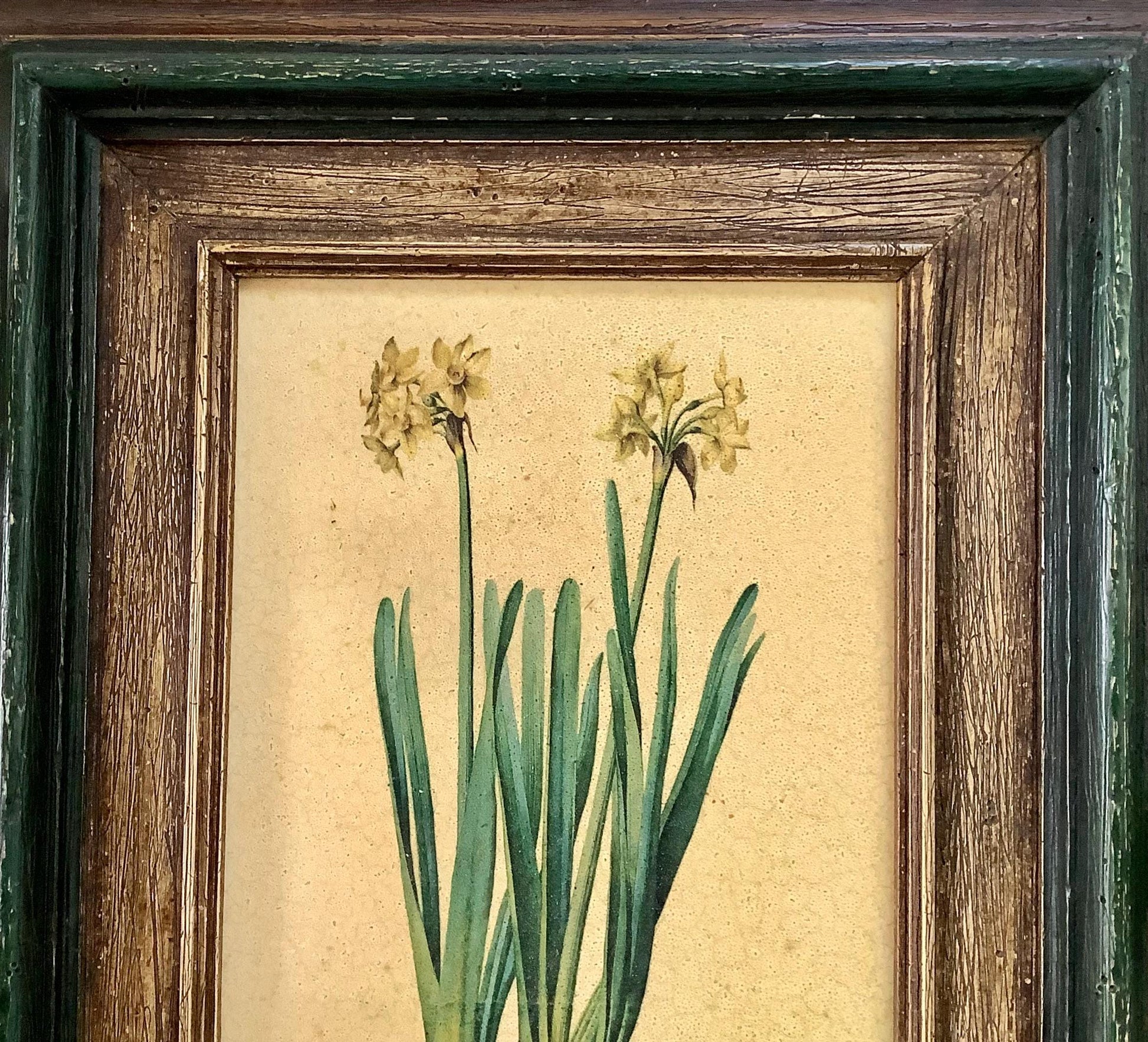 Tableau ancien botanique narcisse peinture originale sur bois. Cadre bois patiné Très bon état